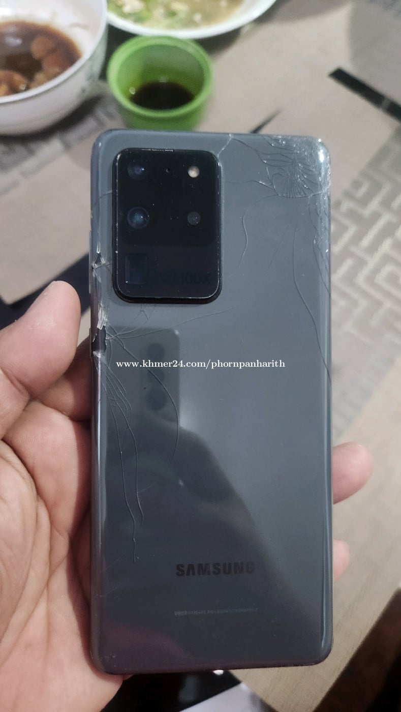 Samsung Galaxy S20 ultra 5G Black Ram 12, Storage 256 korea version ឆ្នូតអេក្រង់ បែកកញ្ជក់ក្រោយ តែម៉ាស៊ីនតំណើរការទាំងអស់។ មានស្កេនមេដៃ កាម៉ារ៉ាច្បាស់ 100 x zoom។ សំរាប់បងប្អូនយកលេងGame រឺ Samsung Dex ម៉ាអែម