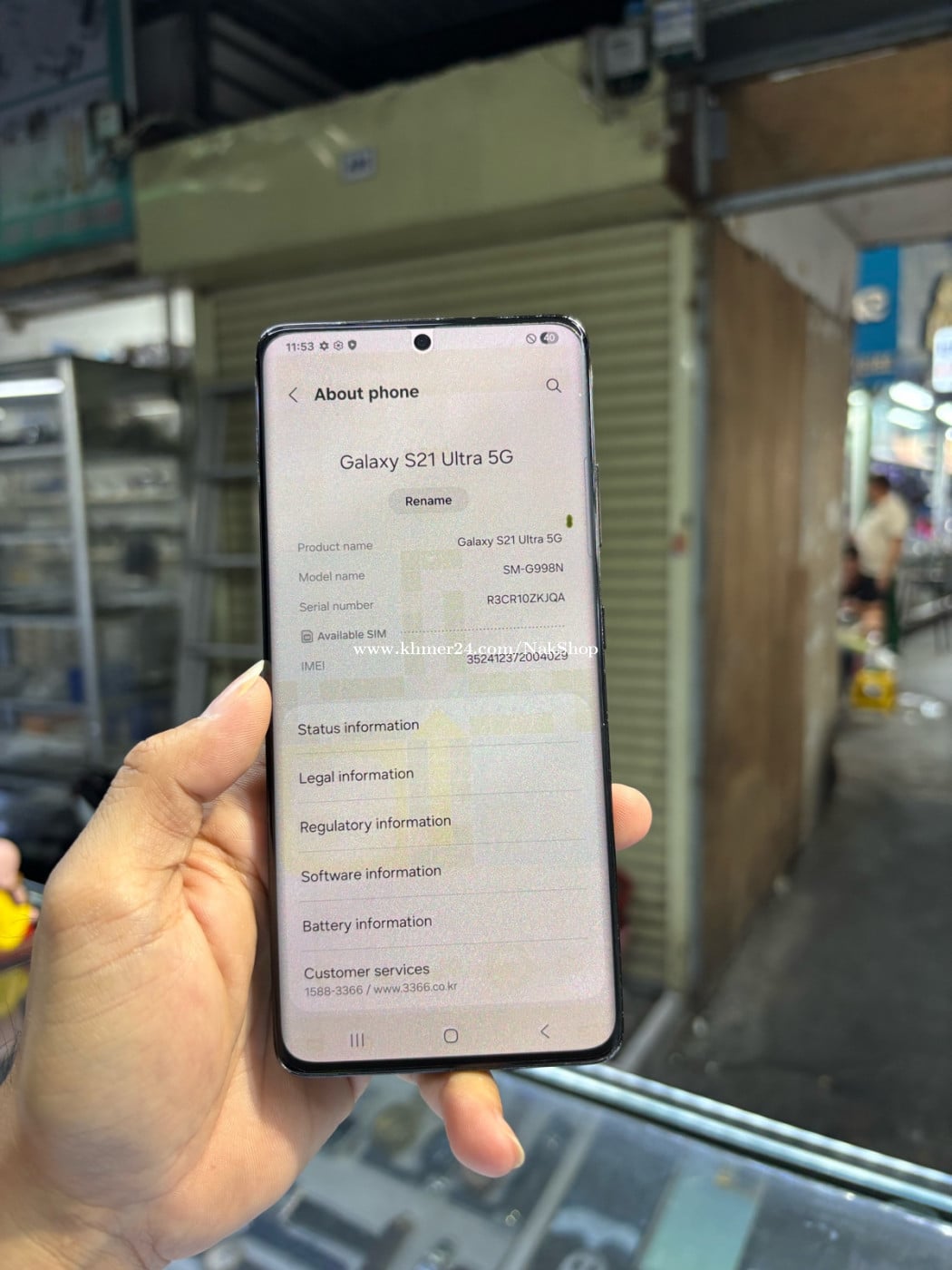 Samsung S21Utra 256G Ram12G Sim1 Korea. សានុំដានអេក្រង់ អ៊ុចតិច
