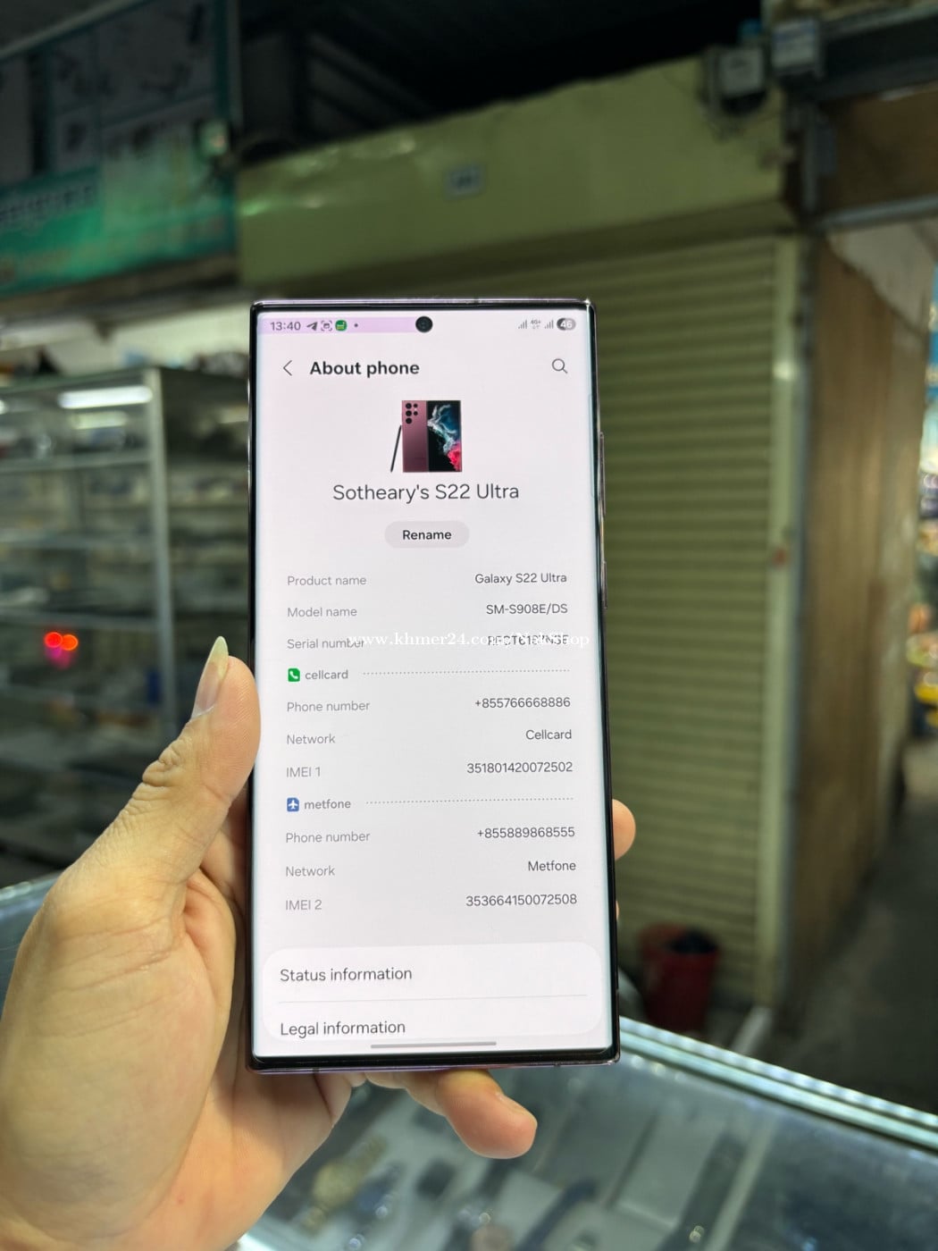 Samsung S22Utra 128G Ram8G Sim2 ស្នាមអេក្រង់ខាងលើតិច