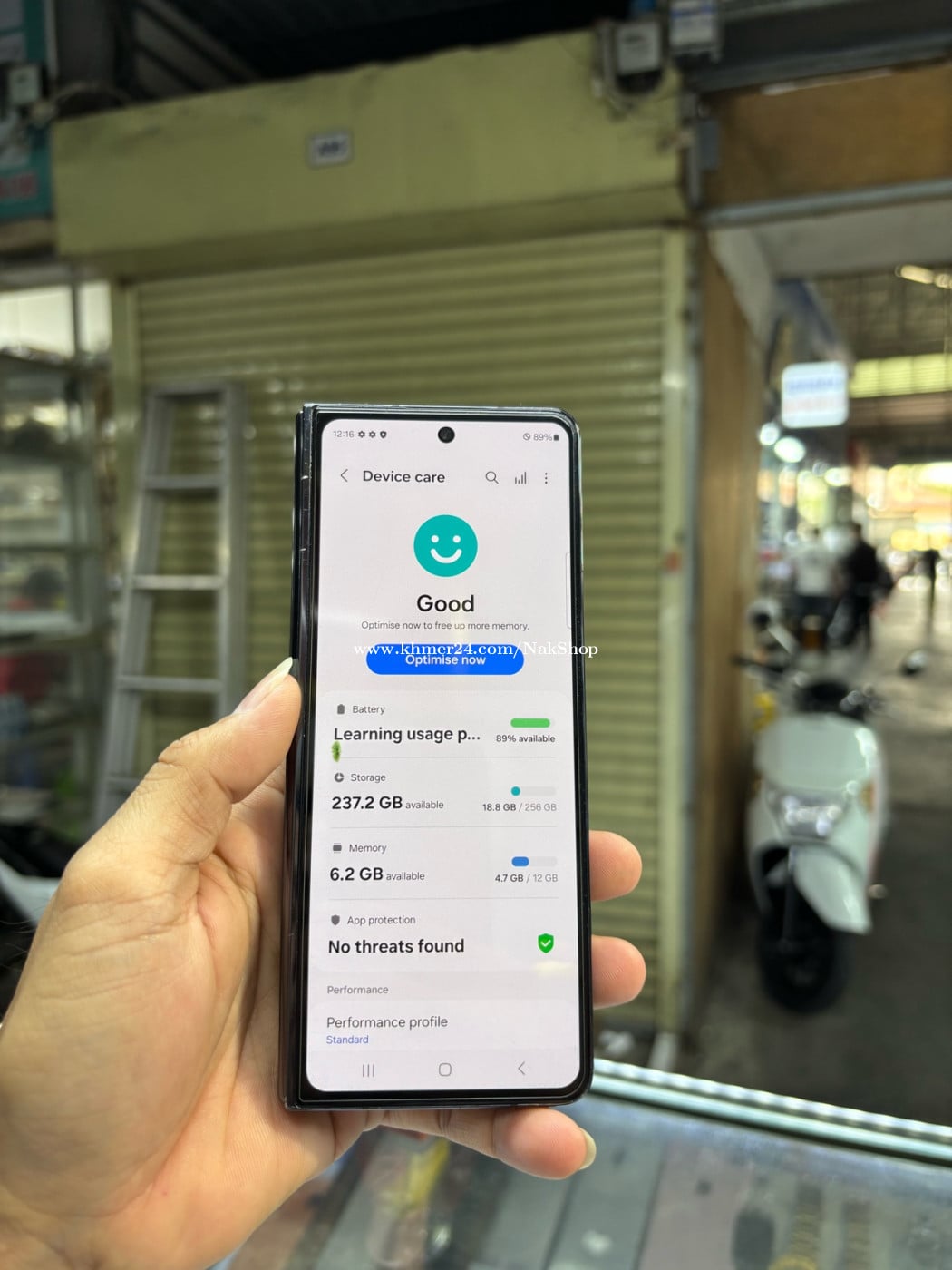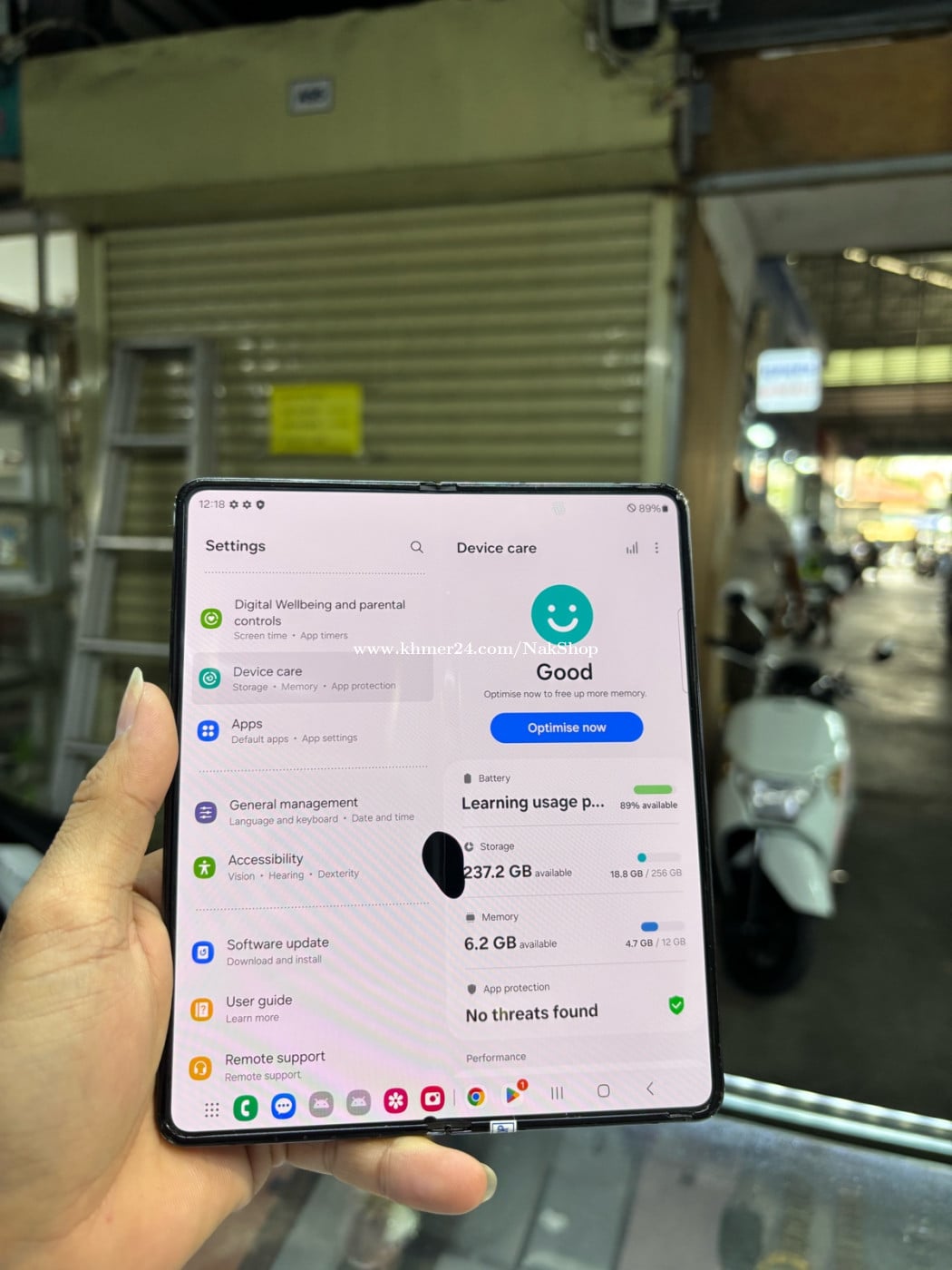 Samsung ZFold5 256G Ram12G Sim2esim ម៉ាសុីនសានុំ អ៊ុចអេក្រង់មុខតិច និងជាំក្នុង