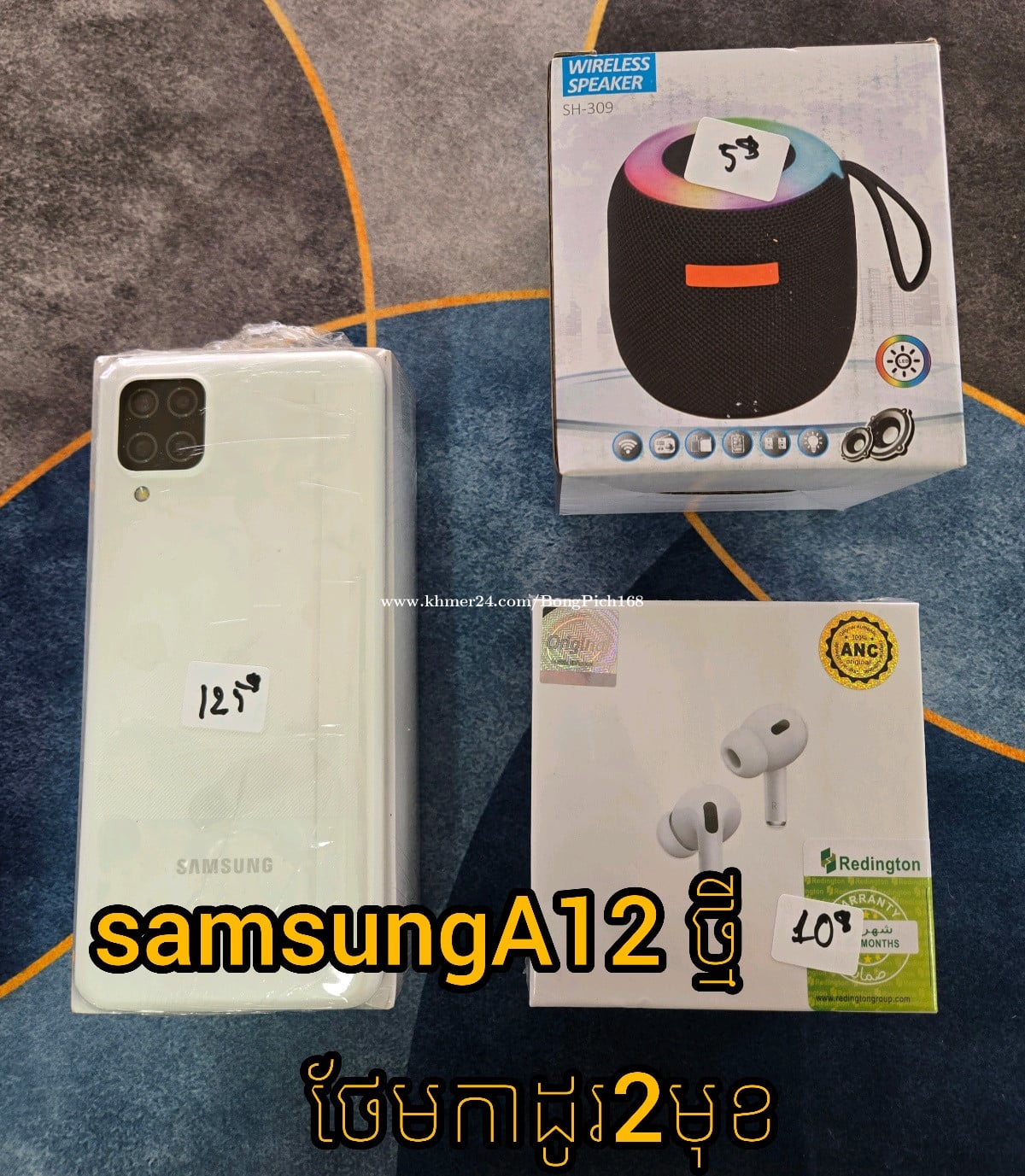 SamsungA12 ថ្មីប្រអប់ ថែមកាដូរ2មុខ