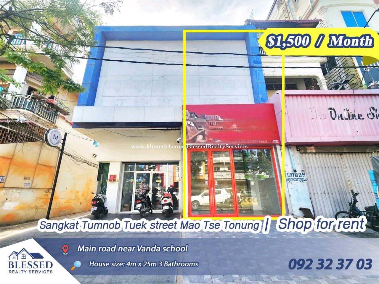 Sangkat Tumnob Tuek street Mao Tse Tonung ๐ฅ Shophouse for Rent ๐ฅ ๐ฐ Price: $1,200 / month โจ House size: 4m x 25m โจ Bathrooms: 3 โจ Floors: 2 ๐ Location: Main road near Vanda school, great for business, school, Hospital and living. ๅ่ฏบๅธๅพทๅ ๅๅบ ยท ๆฏๆณฝไธๅคง้ ๐ฅ ๅบๅฑๅบ็ง ๐ฅ ๐ฐ ไปทๆ ผ๏ผ ๆฏๆ $1,200 โจ ๆฟๅฑ้ข็งฏ๏ผ 4็ฑณ ร 25็ฑณ โจ ๅซ็้ด๏ผ 3้ด โจ ๆฅผๅฑ๏ผ 2ๅฑ ๐ ไฝ็ฝฎ๏ผ ไฝไบไธปๅนฒ้๏ผ้ ่ฟไธ่พพๅญฆๆ ก๏ผ้ๅธธ้ๅๅ็ๆใๅผๅๅญฆๆ กใๅป้ขๅๅฑ ไฝใ ๐ Contact: 092323xxxClick To Call โก๏ธ Telegram: https://t.me/az_chai27 Channel Telegram: https://t.me/rent_blessedrealty License Number: E-25-030