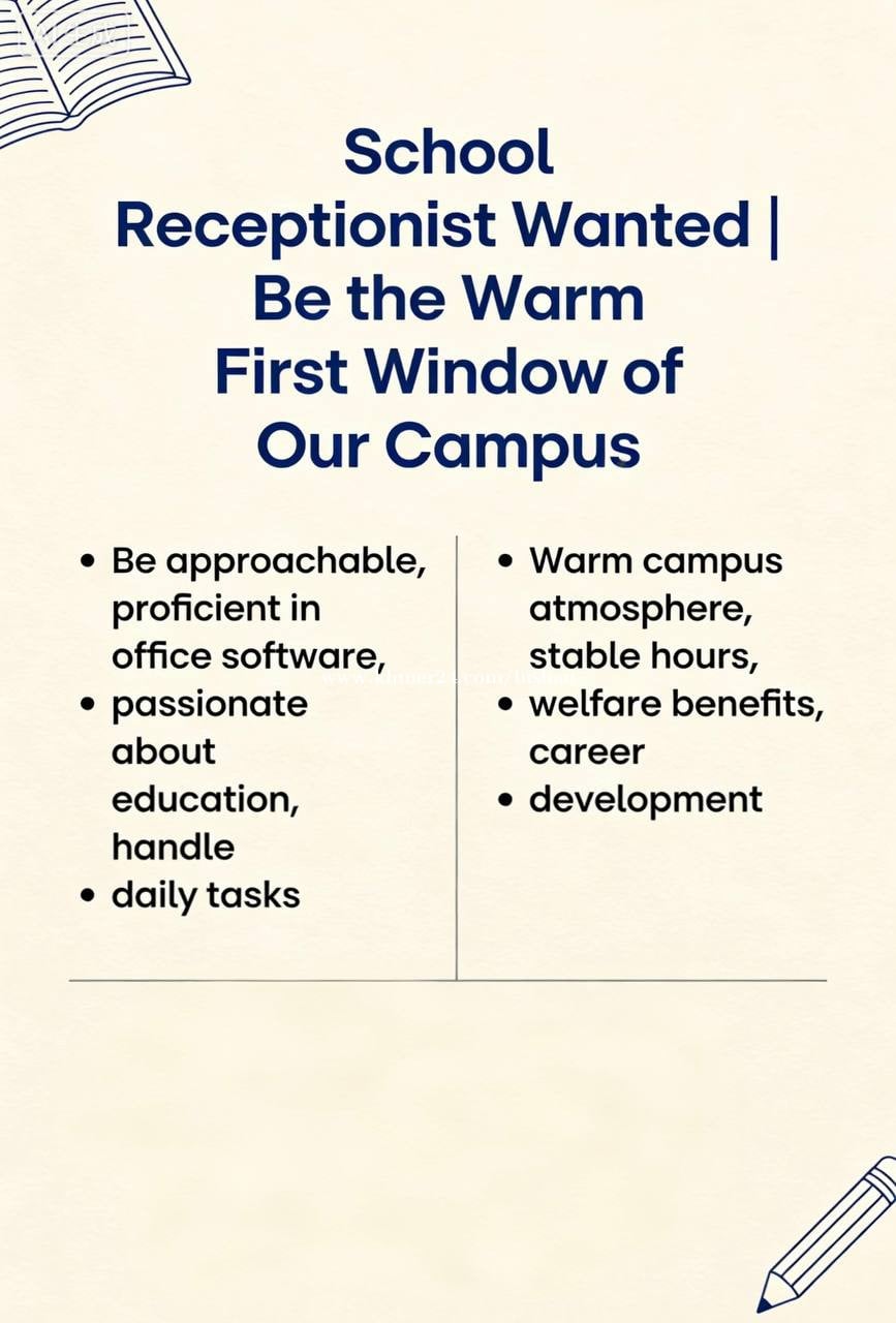 ๐ School Receptionist Wanted | Join Our Warm Campus Team! Weโre looking for a friendly, organized School Receptionist to be the welcoming face of Dandelion International Academy Sensok campus. What youโll do: โข Greet visitors, manage calls, and keep daily operations running smoothly โข Be the warm link between parents, staff, and students What we need from you: โข Approachable personality & great communication skills โข Proficient in office software โข Passion for education & a strong sense of responsibility What youโll get: โจ Stable hours + great benefits โจ A supportive, growth-focused campus environment โจ Clear career development path ๐ Apply now to be the heart of our campus!