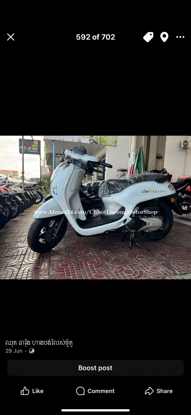 Honda Scoopy Smartkey ឆ្នាំ2025 ថ្មីកេស តម្លៃ3150$ ថែមជូនការដូរ១០មុខ❤️🙏 ទីតាំងផ្លូវវេងស្រេង ផ្សារឯករាជ្យ3 https://maps.google.com/?cid=11167075723528418894&entry=gps ពត៏មានបន្ថែមសូមទំនាក់ទំនង: -Smart 070353xxxClick To Call -Smart 016772xxxClick To Call -Metfone 068772xxxClick To Call -Cellcard 092772xxxClick To Call