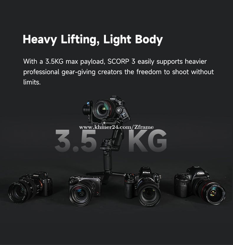 SCORP 3 Kit - Gimbal កម្រិត Cinema សម្រាប់ Filmmaker អាជីព ✅ មាន AI 4.0 Tracking Sensor តាមដានដោយស្វ័យប្រវត្តិ ✅ គាំទ្រ Mirrorless & Camera Cine ✅ អាចផ្ទុកទំងន់ដល់ 3.5KG ✅ មាន Remote Control ដាច់ដោយឡែក ✅ ស្ថេរភាពខ្ពស់ សម្រាប់ថត Cinematic ✅ ល្អសម្រាប់ Short film, Wedding film, Commercial 🎯 សម្រាប់អ្នកដែលចង់បាន ➡️ កម្លាំងដូច Gimbal កម្រិតខ្ពស់ ➡️ បច្ចេកវិទ្យាថ្មី ➡️ តម្លៃមិនខ្ពស់ពេក ធានា 1 ឆ្នាំ។ 👉លេខទំនាក់ទំនង: 0315273xxxClick To Call 👉តេលេក្រាម : t.me/ZframeKh #Zframekh #SCORPGimbal #AITracking #Videographer #Cambodia #KhmerCreator #Gimbal