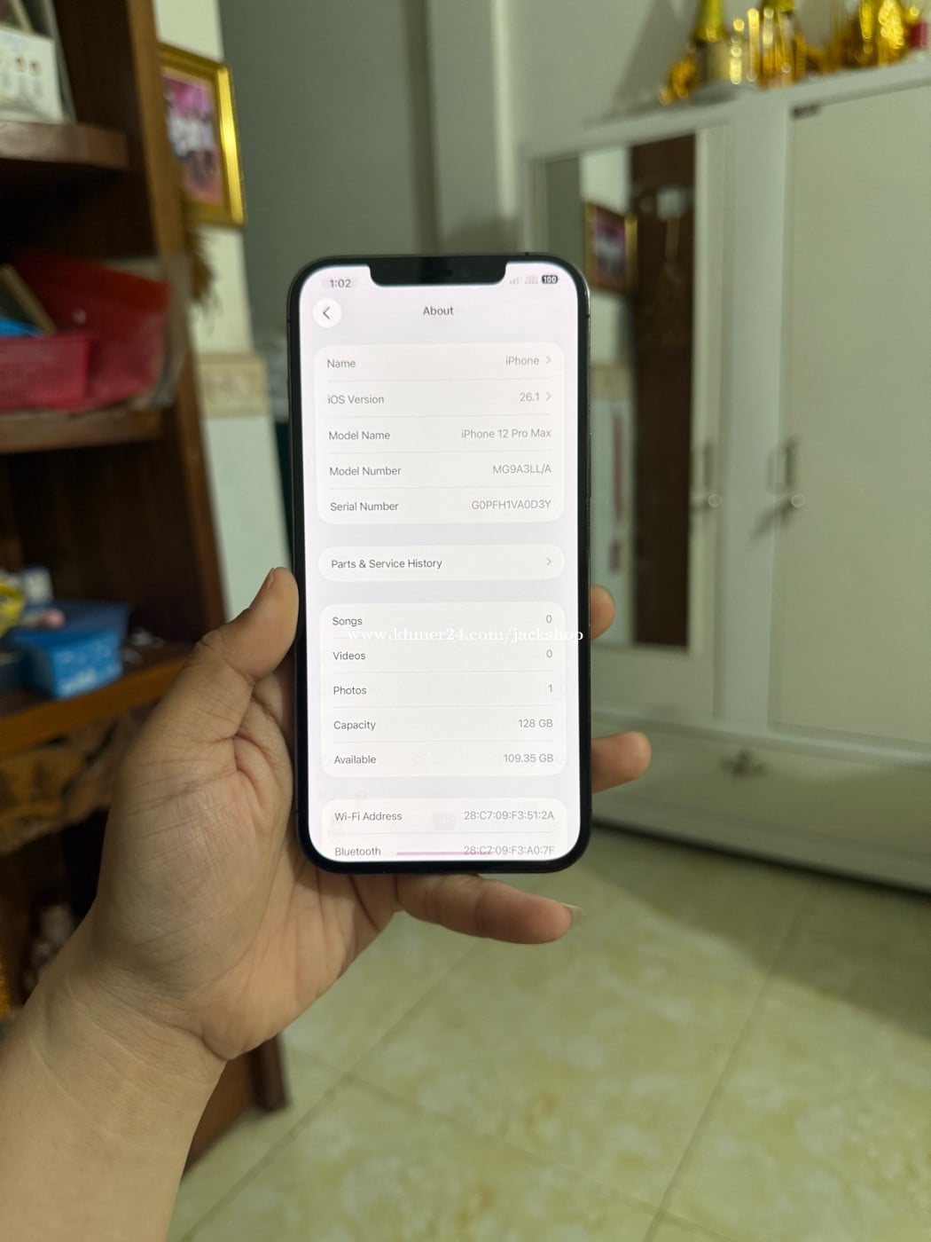 iPhone 12pro max 128g Sim1+Esim 98% Errorស្កេនតែអាចធ្វើស្កេនបាន ធ្លាប់ដូរអេក្រង់ តែដាក់អេក្រង់ហ្សុីនវិញដានតិចៗ ធានាម៉ាសុីនហ្សុីនមិនដែរជួសជុល ថ្មកាន់ កាំមេរ៉ាច្បាស់មុខក្រោយ ធានាលើការប្រើប្រាស់15ថ្ងៃ(only phone)0969000xxxClick To Call telegram