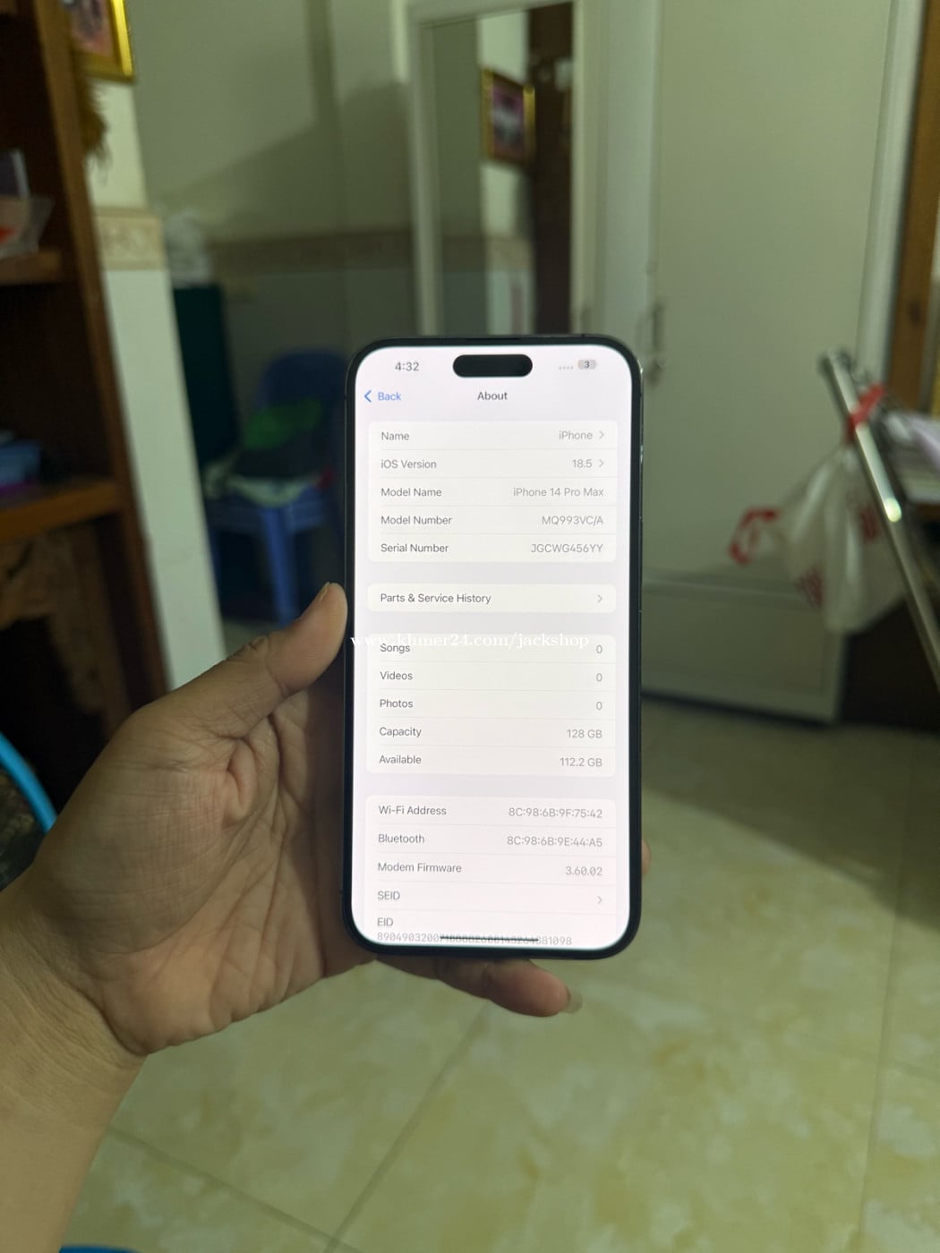 iPhone 14pro max 128g Sim1+Esim Scan 98% ធ្លាប់ដូរថ្ម ធានាទូរស័ព្ទនិងម៉ាសុីនសុំនុំហ្សុីនមិនដែរជួសជុល ថ្មកាន់ កាំមេរ៉ាច្បាស់មុខក្រោយ ធានាលើការប្រើប្រាស់15ថ្ងៃ(only phone) 0969000xxxClick To Call telegram