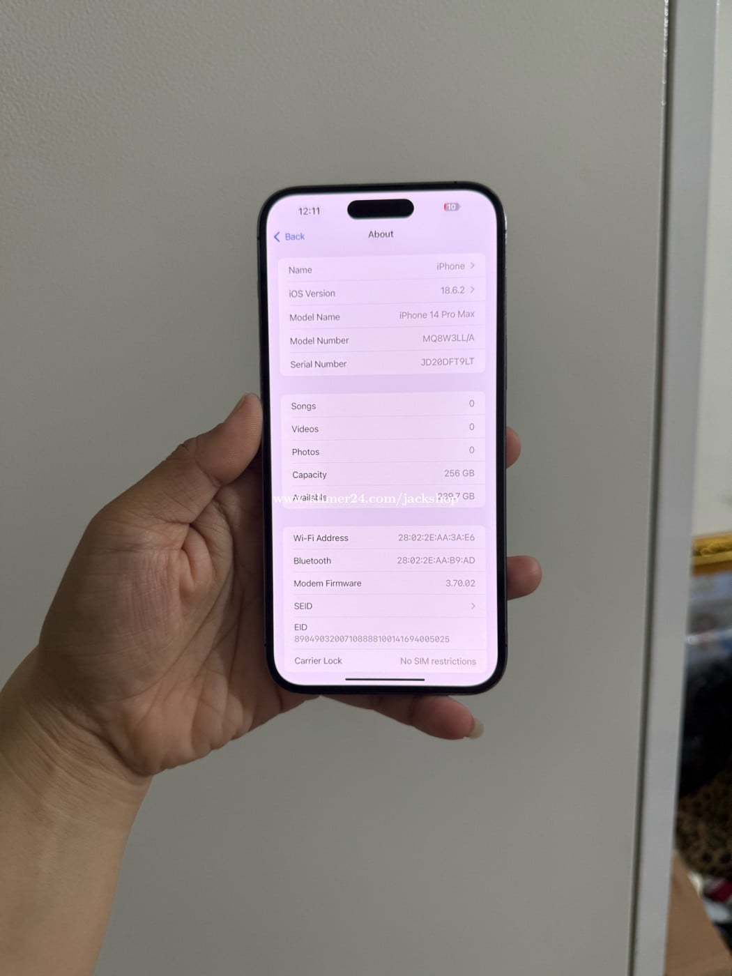 iPhone 14pro max 256g LL/A Esim2 Scan 98% ធានាទូរស័ព្ទនឹងម៉ាសុីនសុំនុំហ្សុីនណែន100% មិនដែរដោះមិនដែរជួសជុល ថ្មកាន់ កាំមេរ៉ាច្បាស់មុខក្រោយ ធានាលើការប្រើប្រាស់15ថ្ងៃ(only phone)0969000xxxClick To Call telegram