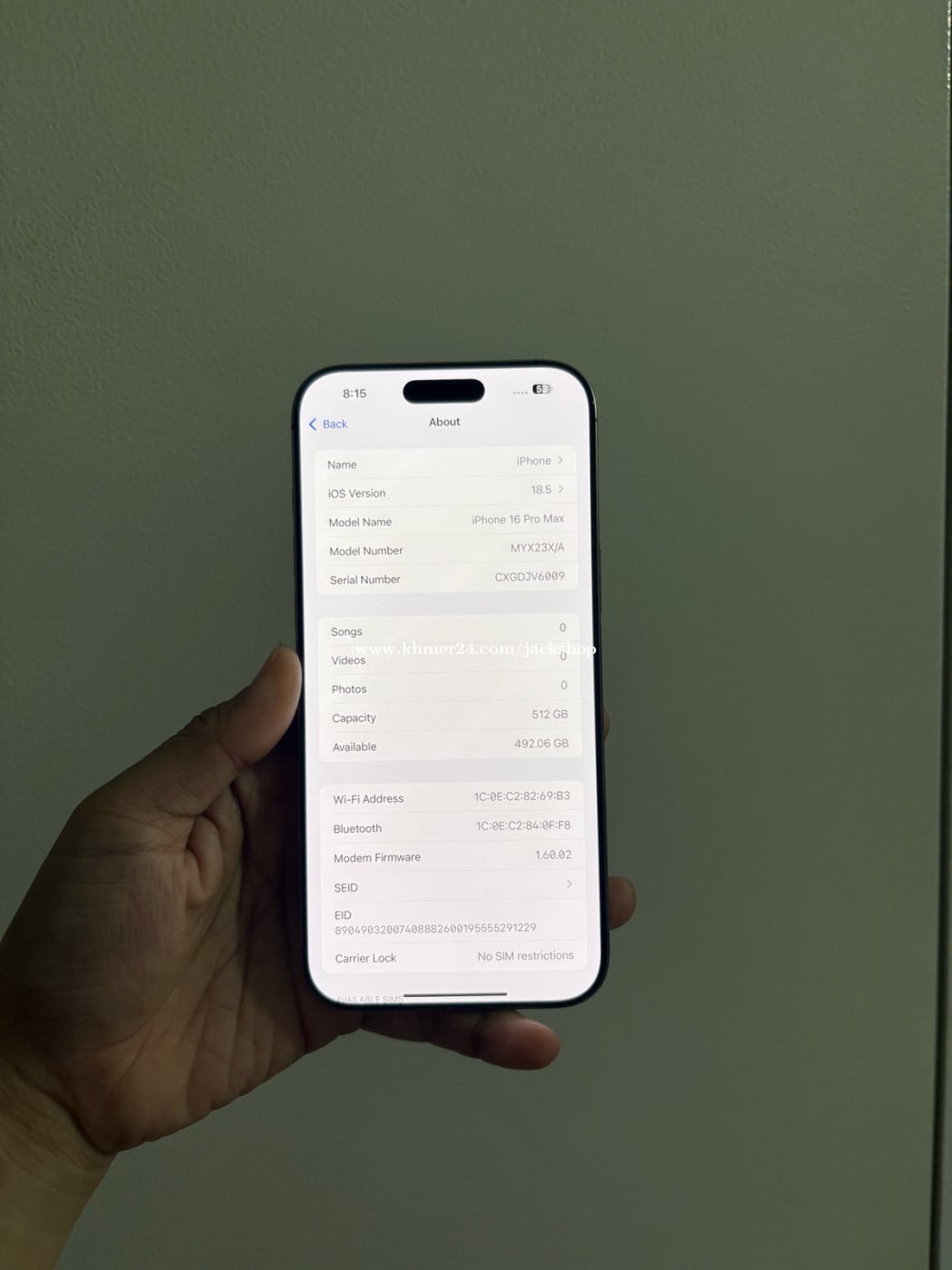 iPhone 16pro max 512g X/A Sim1+Esim Scan 99% ធានាទូរស័ព្ទនឹងម៉ាសុីនសុំនុំហ្សុីនណែន100% Freeផ្លុំ ថ្មកាន់ កាំមេរ៉ាច្បាស់មុខក្រោយ ធានាលើការប្រើប្រាស់15ថ្ងៃ មានតែប្រអប់ (Only Phone )0969000xxxClick To Call telegram (នៅសល់ធានាពីក្រុមហ៊ុន5ខែ)