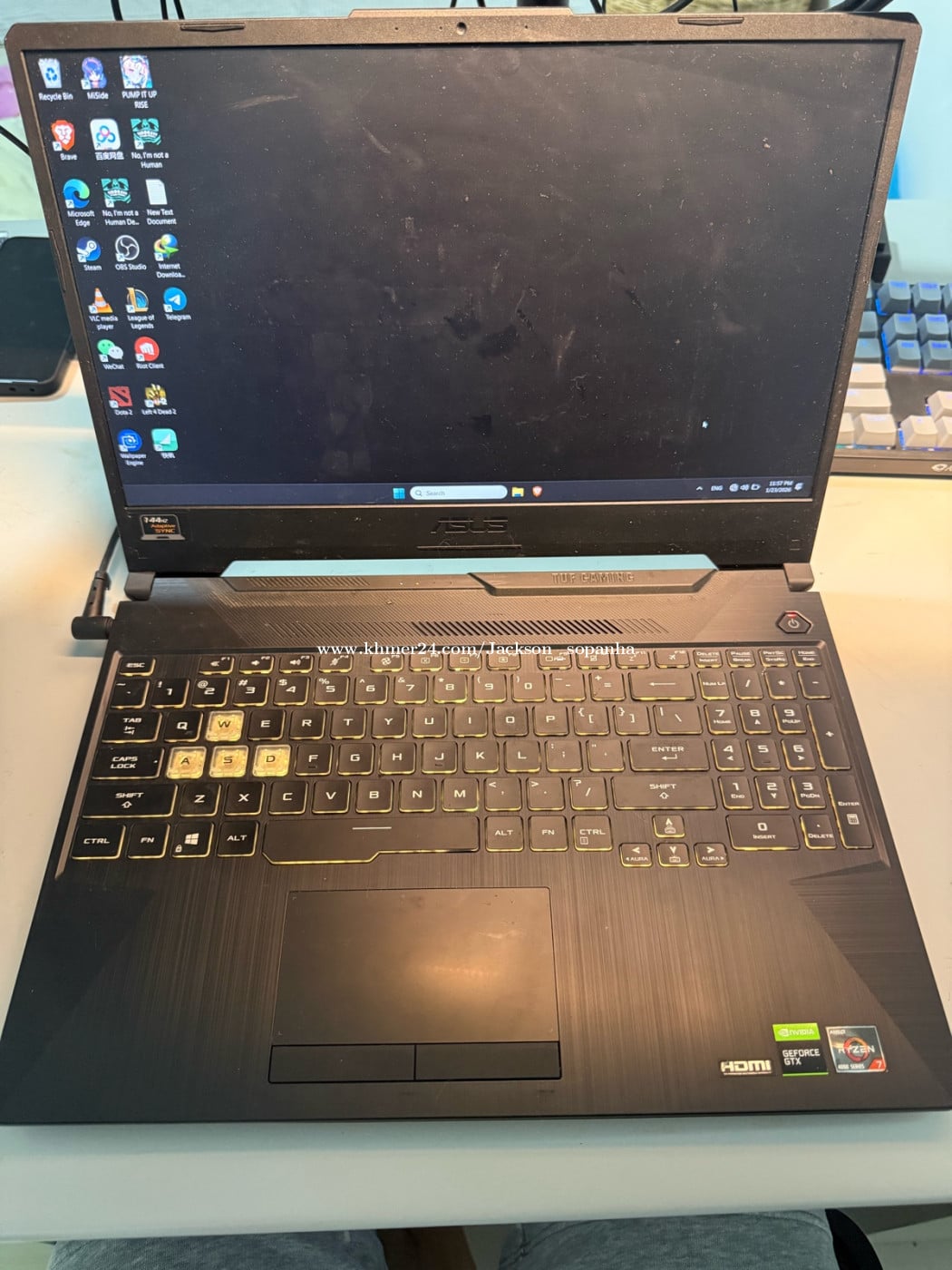 Sell my FA506 Gaming laptop Good condition Ram 32GB 3200mhz 1 stick Storage: 512GB CPU: RYZEN7 4800H GPU: 1650TI NVIDIA Can play a lot of game and work well without problems. I sell Cheap price for University students. If u are in College i can discount to contribute your study.