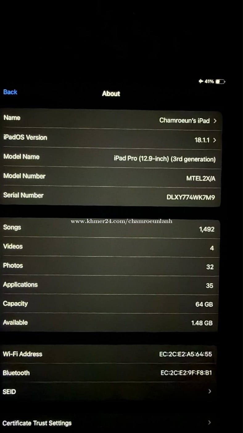 Sell ipad pro 12.9” 3rd gen (2018) 64gb WIFI only + apple pencil Need inbox Telegram 017709xxxClick To Call ចរចារបាន