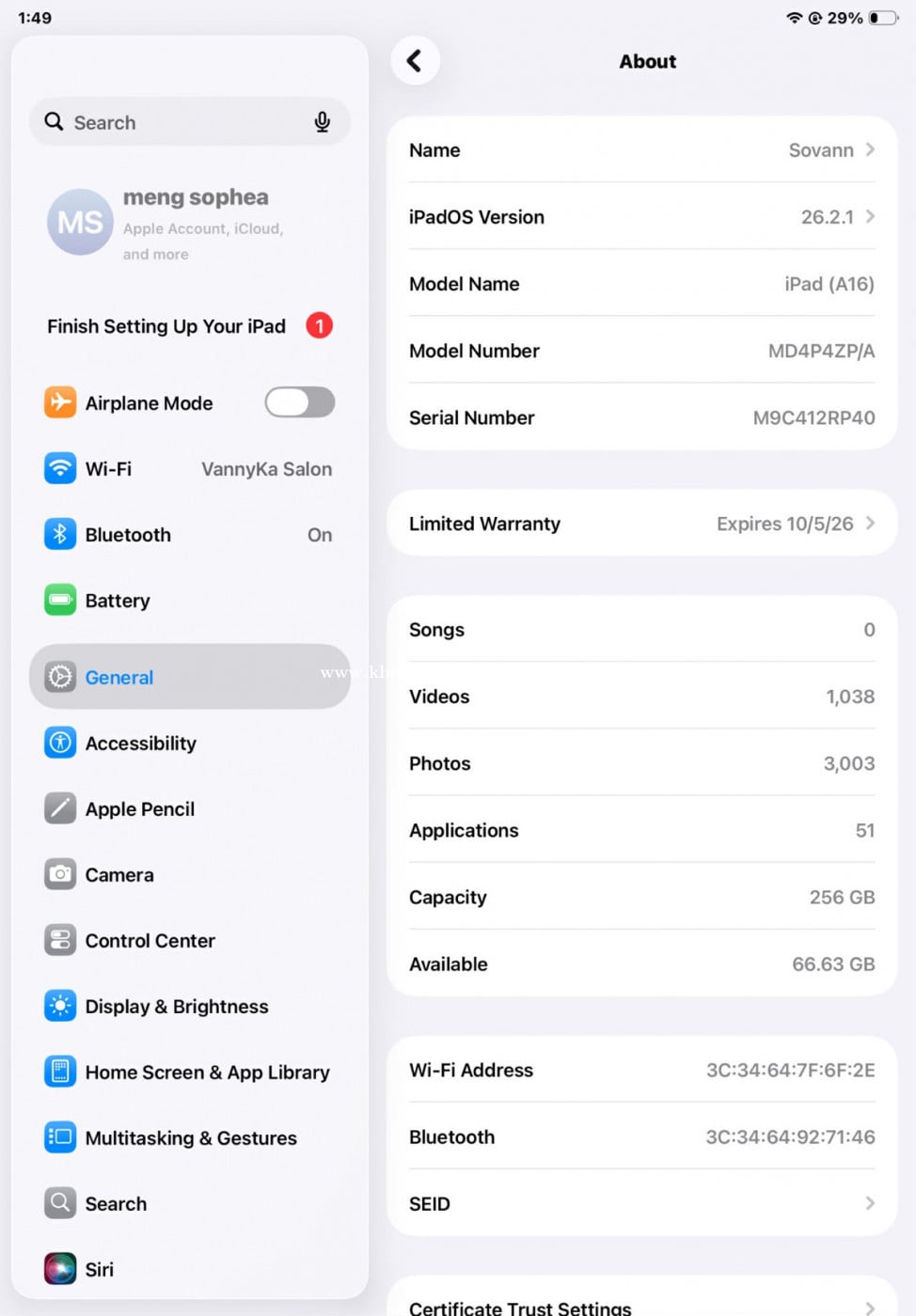 Sell ipad A16 wifi 256G នៅស្អាត 98»99% មានប្រអប់លិតបាន 450$ើមិនស្អាត់មិនយកលុយ ត្រូវការលុយចង់លក់ចេញ