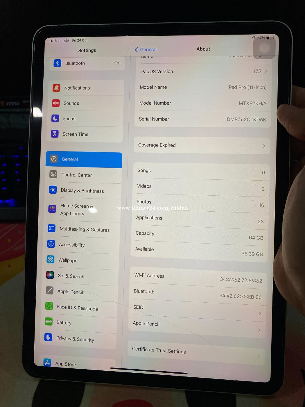 Selling my iPad Pro 2018 (11-inch) in about 80% condition. Works great overall, just has a small crack on the screen. I wanted to change the new version of ipad. *Wifi & Sim *This price includes with Apple Pencil Price is negotiable! iPad Pro 2018 (ទំហំ 11 អ៊ីញ) ស្ថិតក្នុងស្ថានភាពប្រហែល 80%។ ដំណើរការល្អជារួម គ្រាន់តែមានស្នាមប្រេះ មួយឆ្នូតតូចមួយនៅលើអេក្រង់។ *ប្រើបានហ្វាយហ្វាយ និង sim *តម្លៃនេះបានជាមួយនឹង Apple Pencil តម្លៃអាចចរចាបាន!