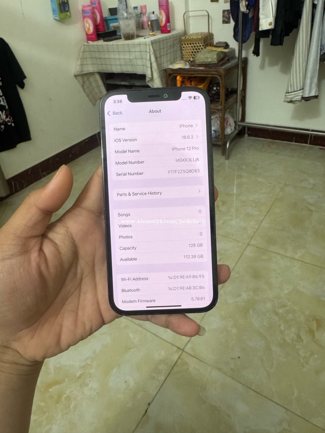 iPhone 12pro 128g Sim1+Esim 98% Errorស្កេនតែអាចធ្វើស្កេនបាន ធ្លាប់ដូរអេក្រង់តែដាក់អេក្រង់ហ្សុីនវិញ ធានាទូរស័ព្ទនិងម៉ាសុីនសុំនុំហ្សុីនមិនដែរជួសជុល ថ្មកាន់ កាំមេរ៉ាច្បាស់មុខក្រោយ ធានាលើការប្រើប្រាស់15ថ្ងៃ(only phone) 0969000xxxClick To Call telegram