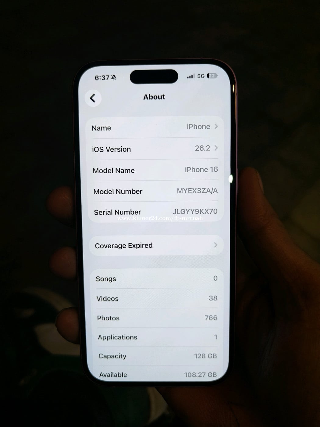 Sell iphone 16 ZA sim2 128g 98% Only phone