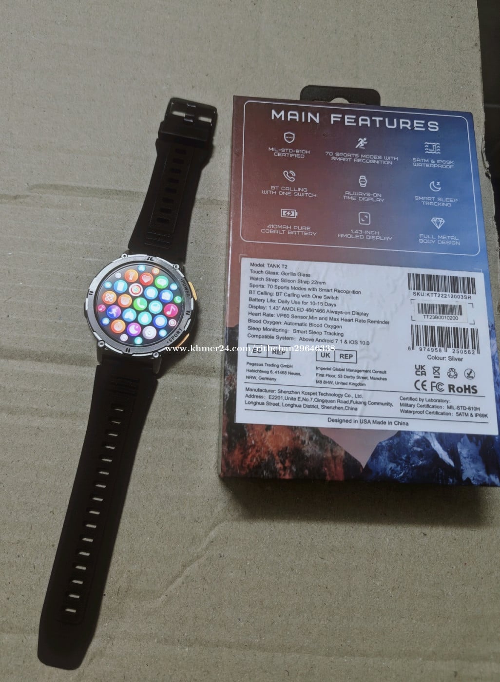Kospet tank T2 model condition 99% អត់សូវប្រើ មានមុខងារវាស់សំពាធឈាម និងមុខងារកីឡាជាច្រើន