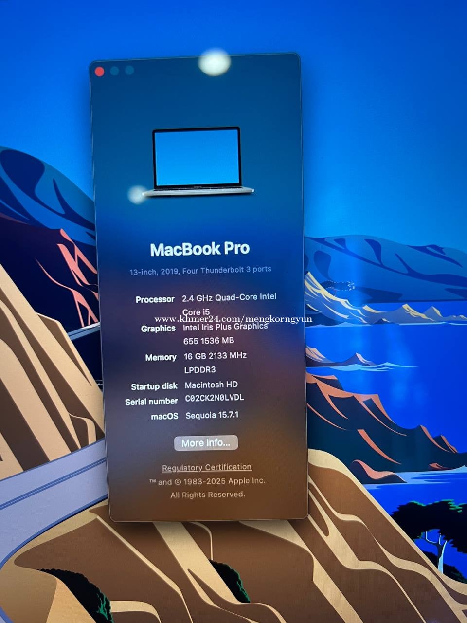 Sell Macbook Pro 2019 (មានបញ្ហាថ្មខ្សោយ 1h) ទុកចោលមិនសូវបានប្រើ។