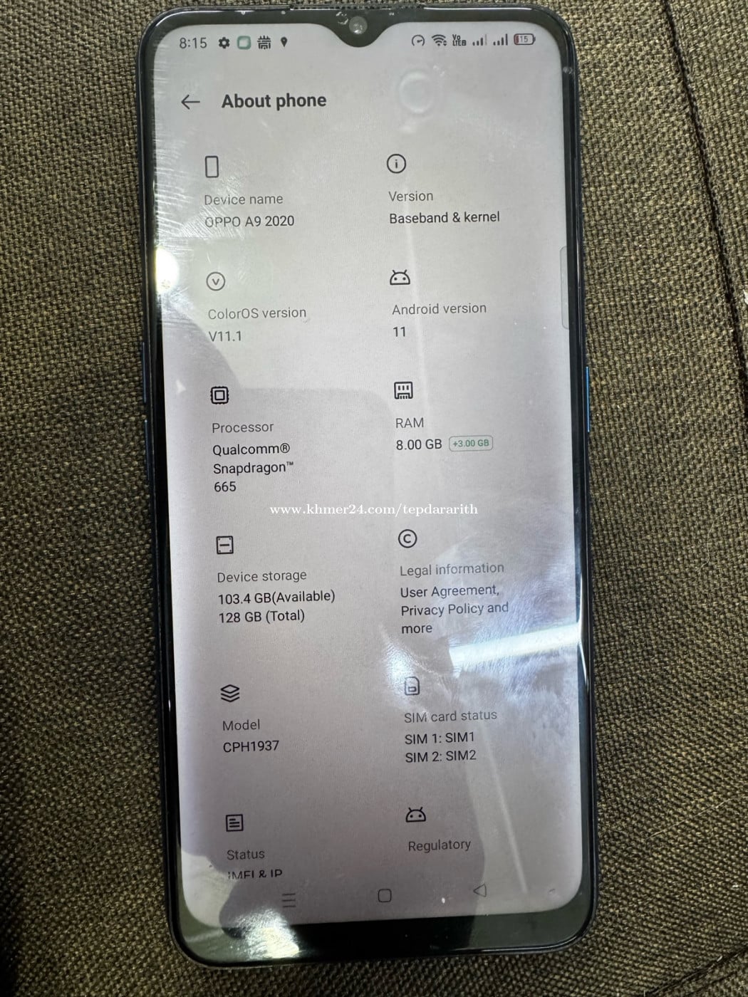 Sell oppo A9 2020 ម្ចាស់ផ្ទាល់ប្រើ 98%
