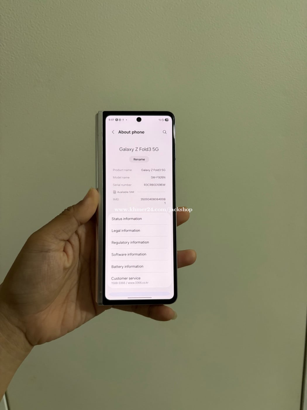 Z Fold3 ram12g rom256g Sim1 98% អេក្រង់ក្នុងដូចរូបនៅចុចប្រើបានធម្មតា អេក្រង់ក្រៅស្អាត ធានាទូរស័ព្ទសុំនុំហ្សុីន មិនដែរដោះមិនដែរជួសជុល ធានាសាច់អេក្រង់ស្អាតអត់មានដាន ថ្មកាន់ កាំមេរ៉ាច្បាស់មុខក្រោយ ស្កេនមុខស្កេនក្រយៅដៃ អេក្រង់120Hz ធានាលើការប្រើប្រាស់15ថ្ងៃ(only phone) 0969000xxxClick To Call telegram