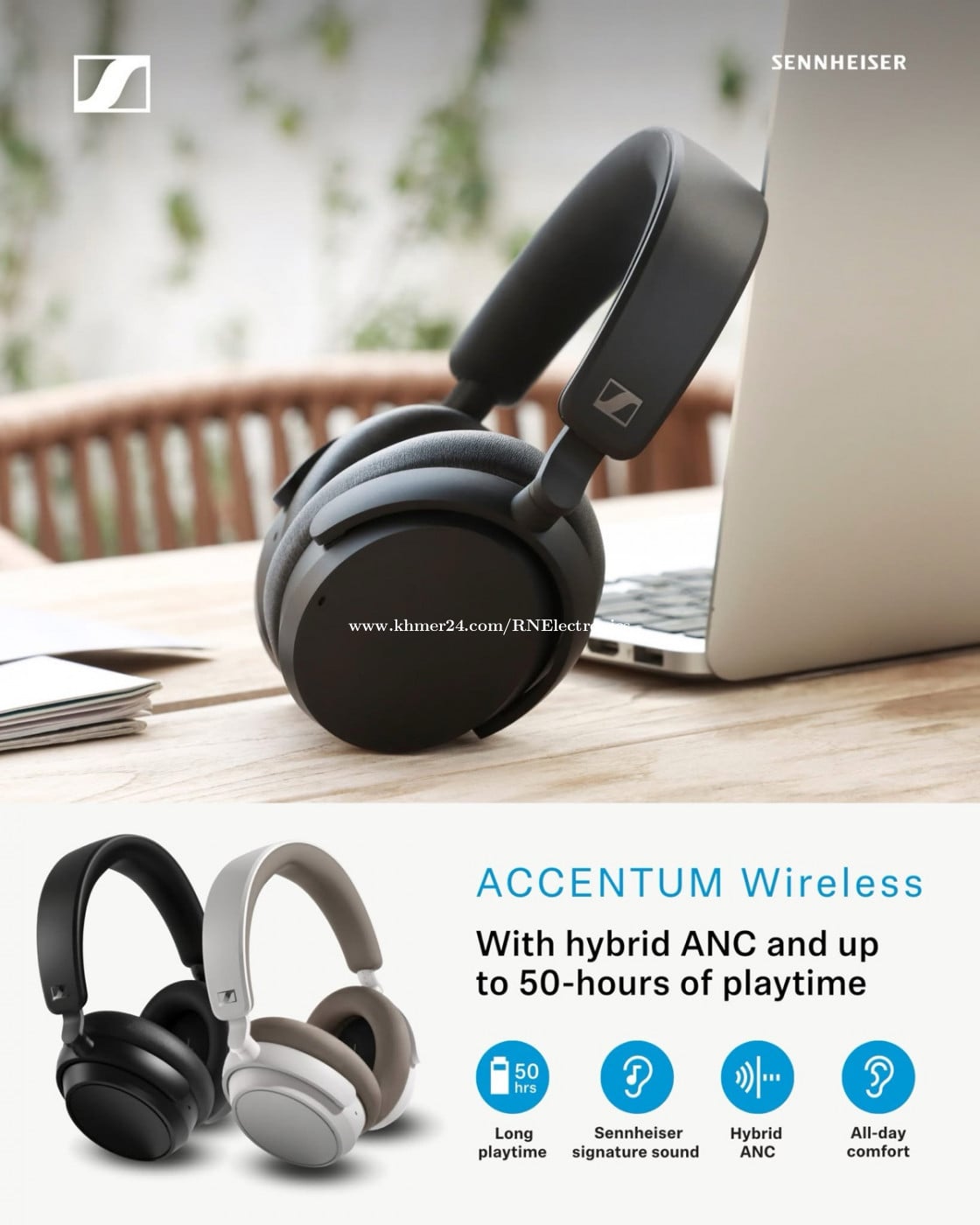 Sennheiser Accentum Wireless Headphones - Hybrid Active Noise Cancellation (ANC) - Bluetooth 5.2 with Multipoint Connectivity - Up to 40 Hours Battery Life - Physical Buttons for Playback & Calls - Comfortable Over-Ear Design ๐ Contact: - FB Page: facebook.com/electronicsRN - Telegram: t.me/RNElectronics - Phone: 098345xxxClick To Call #Sennheiser #AccentumWireless #WirelessHeadphones #ANC #BluetoothHeadphones #PremiumSound #LongBatteryLife