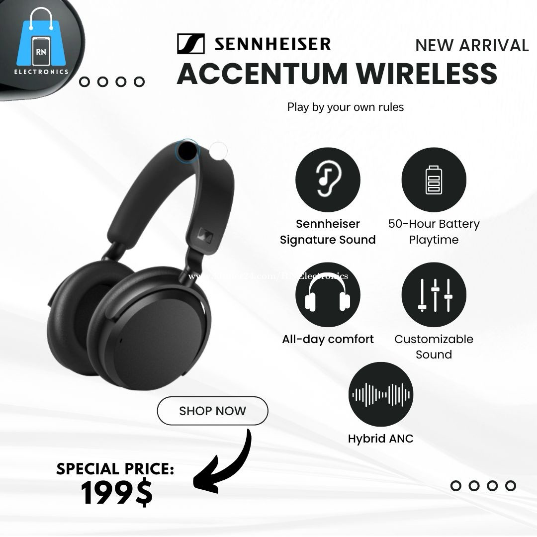Sennheiser Accentum Wireless Headphones - Hybrid Active Noise Cancellation (ANC) - Bluetooth 5.2 with Multipoint Connectivity - Up to 40 Hours Battery Life - Physical Buttons for Playback & Calls - Comfortable Over-Ear Design ๐ Contact: - FB Page: facebook.com/electronicsRN - Telegram: t.me/RNElectronics - Phone: 098345xxxClick To Call #Sennheiser #AccentumWireless #WirelessHeadphones #ANC #BluetoothHeadphones #PremiumSound #LongBatteryLife