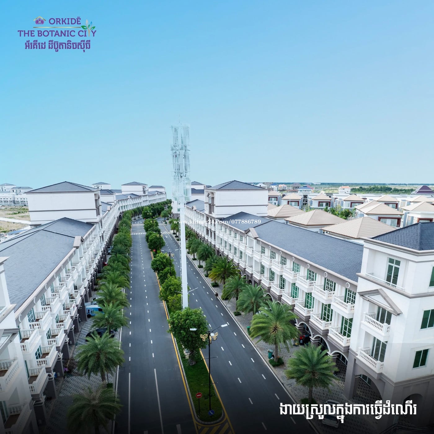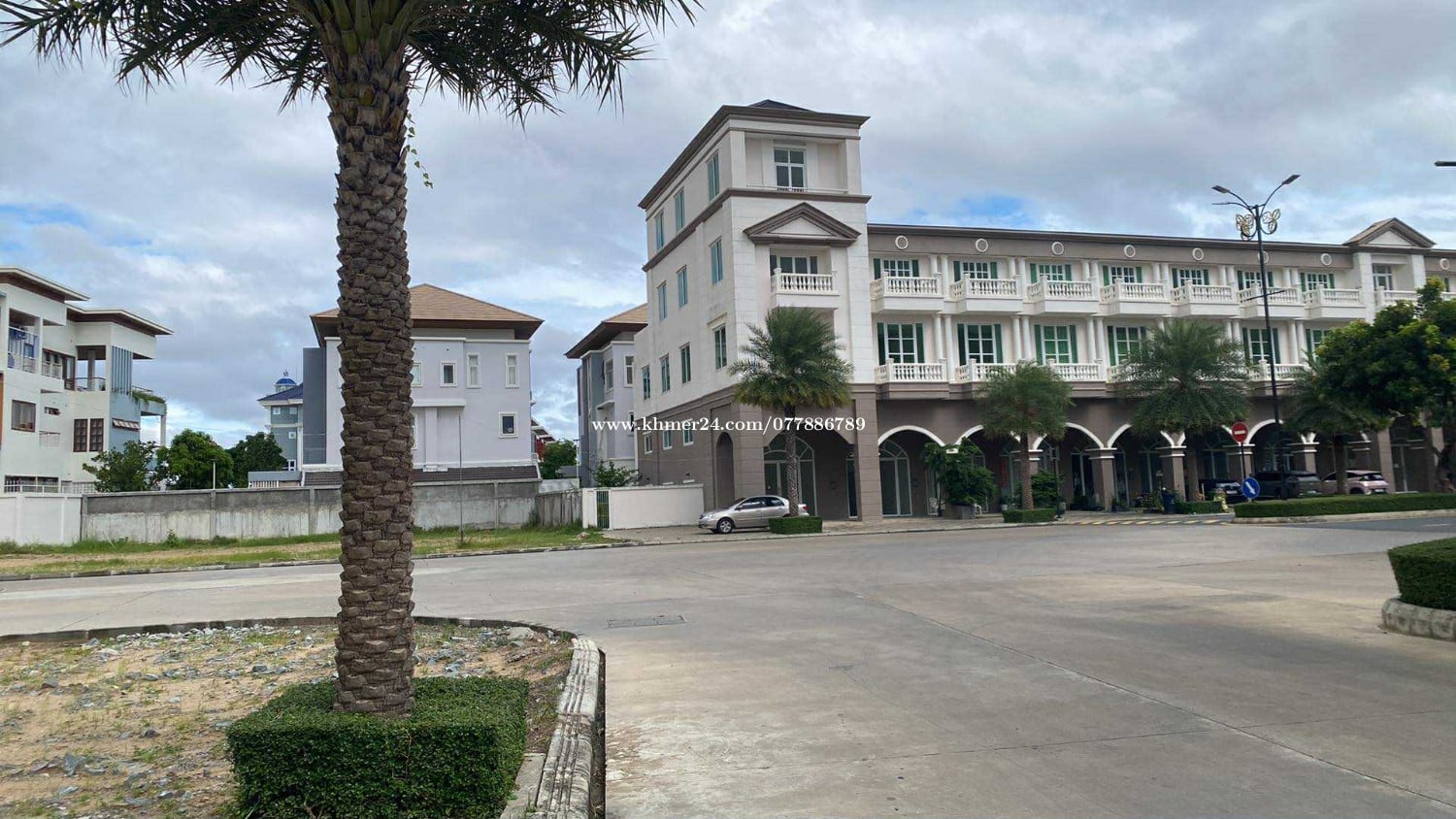 Shop house ជាប់ផ្លូវចូលគំរោង THE BOTANIC PALACE 6A ផ្ទះសង់បាន 100% ហើយ ទំហំដីក្បាល 12.45 x 22 ទំហំផ្ទះ 6 x18 មាន 5 បន្ទប់ដេក 6បន្ទប់ទឹក បែរទៅទិស ជើងឈានកើត ជាប់ផ្លូវកៅស៊ូទៅមកនឹងសួនកណ្តាល