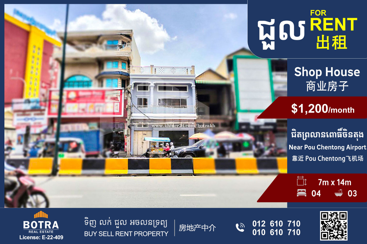 ๐ฃ Shop House for Rent #P1156 ๐ Near Pou Chentong Airport ๐ Price: $1,200/month (nego) - Size: 7m x 14m - Rooms: 4 | Bathrooms: 3 โโโโโโโโโ Contact us now ๐ 012610xxxClick To Call (Cellcard) ๐ 010610xxxClick To Call (Smart) โถ๏ธ t.me/BotraRealEstate (Chat)