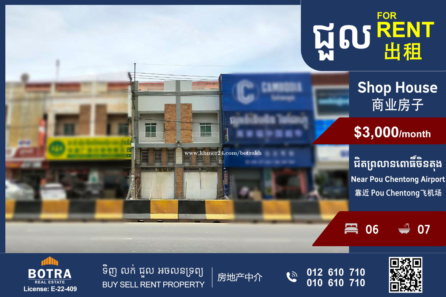 ๐ฃ Shop House for Rent #P1158 ๐ Near Pou Chentong Airport - Bedrooms: 6 - Bathrooms: 7 ๐ Price: $3,000/month (nego) โโโโโโโโโ Contact us now ๐ 012610xxxClick To Call (Cellcard) ๐ 010610xxxClick To Call (Smart) โถ๏ธ t.me/BotraRealEstate (Chat)