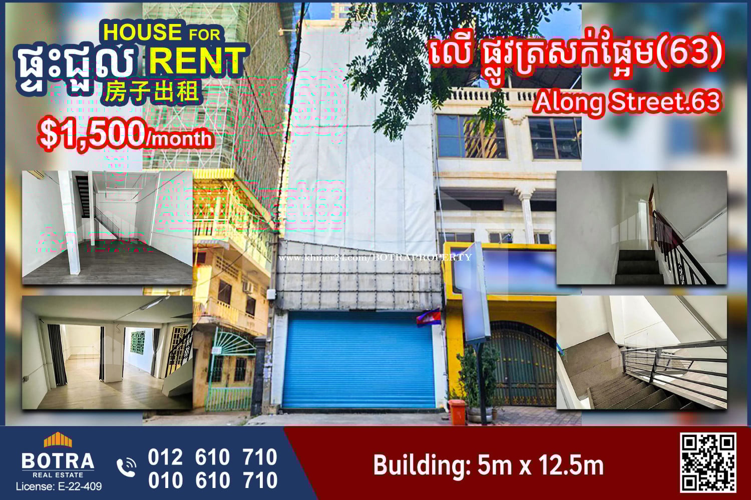 ๐ฃ Shophouse for Rent ๐ Location along Street.63 ๐ Price: $1,500/month โข House size: 5m x 12.5m โโโโโโโโโ Contact us now ๐ 012610xxxClick To Call (Cellcard) ๐ 010610xxxClick To Call (Smart) โถ๏ธ t.me/BotraRealEstate (Chat)