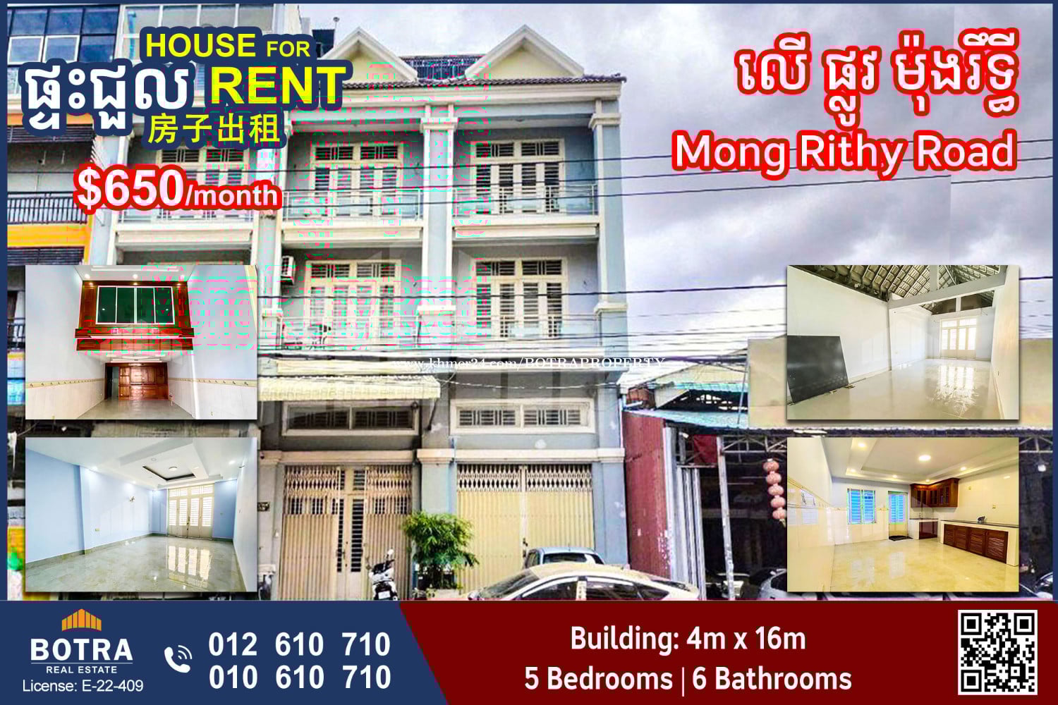 ๐ฃ Shophouse for Rent #P1336 ๐ Location on Mong Rithy Road - Price: $650/month (Nego) - House Size: 4m x 16m - 5 Bedrooms | 6 Bathrooms โโโโโโโโโ Contact us now ๐ 012610xxxClick To Call (Cellcard) ๐ 010610xxxClick To Call (Smart) โถ๏ธ t.me/BotraRealEstate (Chat)