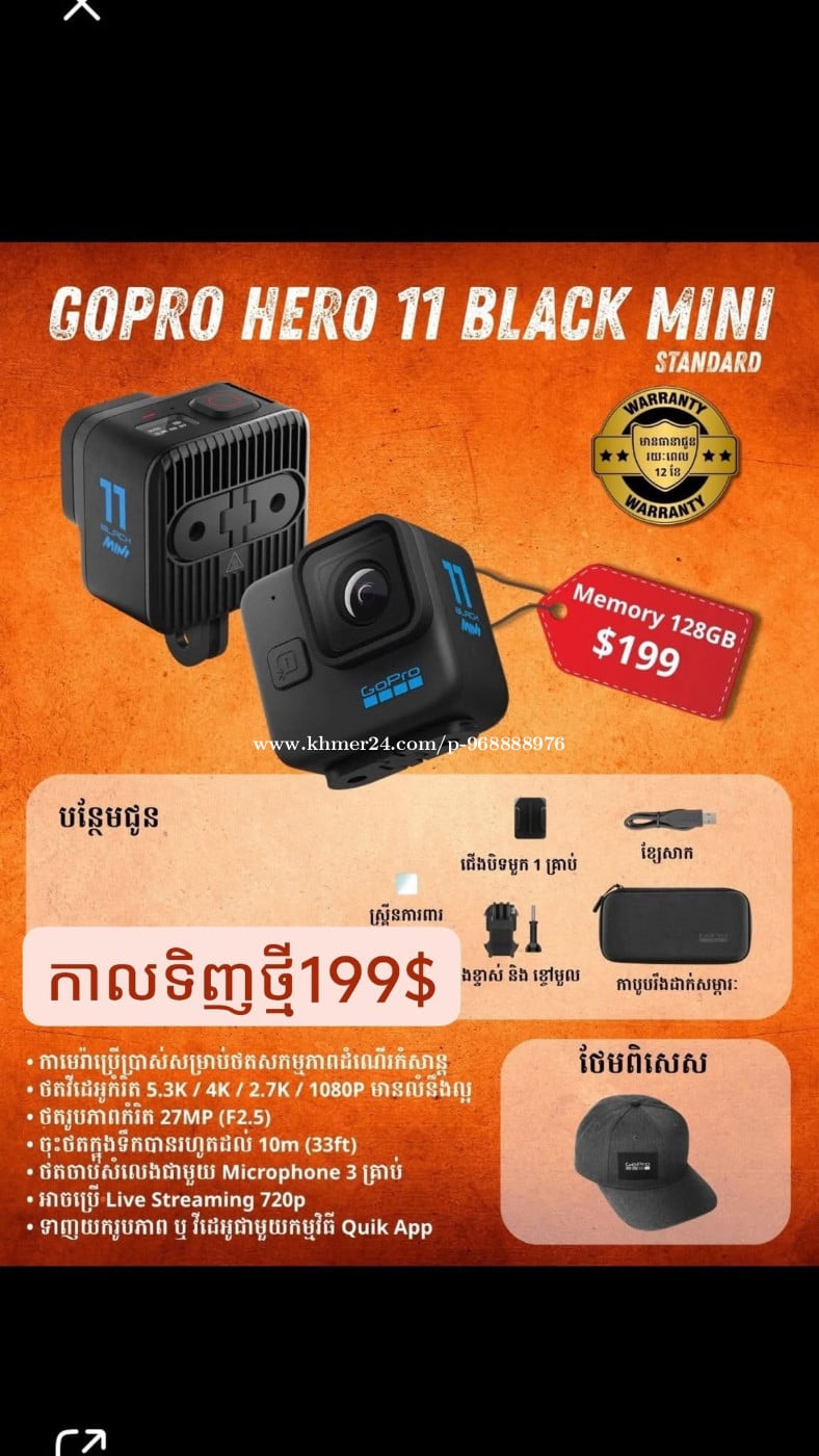 សៀមរាប លក់GoPro 11 mini 99% full box Telegram 0968888xxxClick To Call ចរចារ