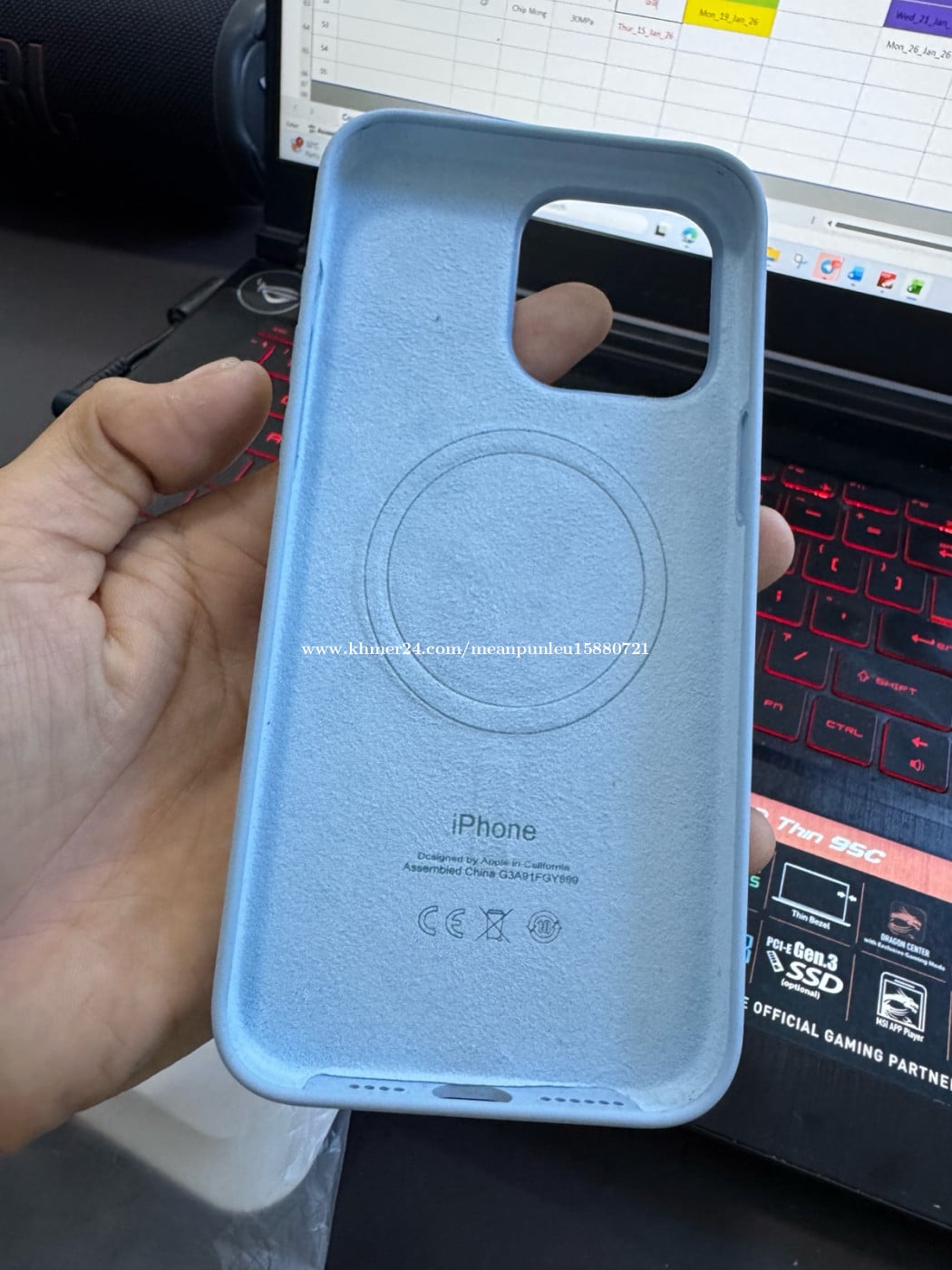 Top grade silicon case for iPhone 15 promax (នៅដូចថ្មី ) ពណ៍ Baby Bleu Telegram: 011931xxxClick To Call