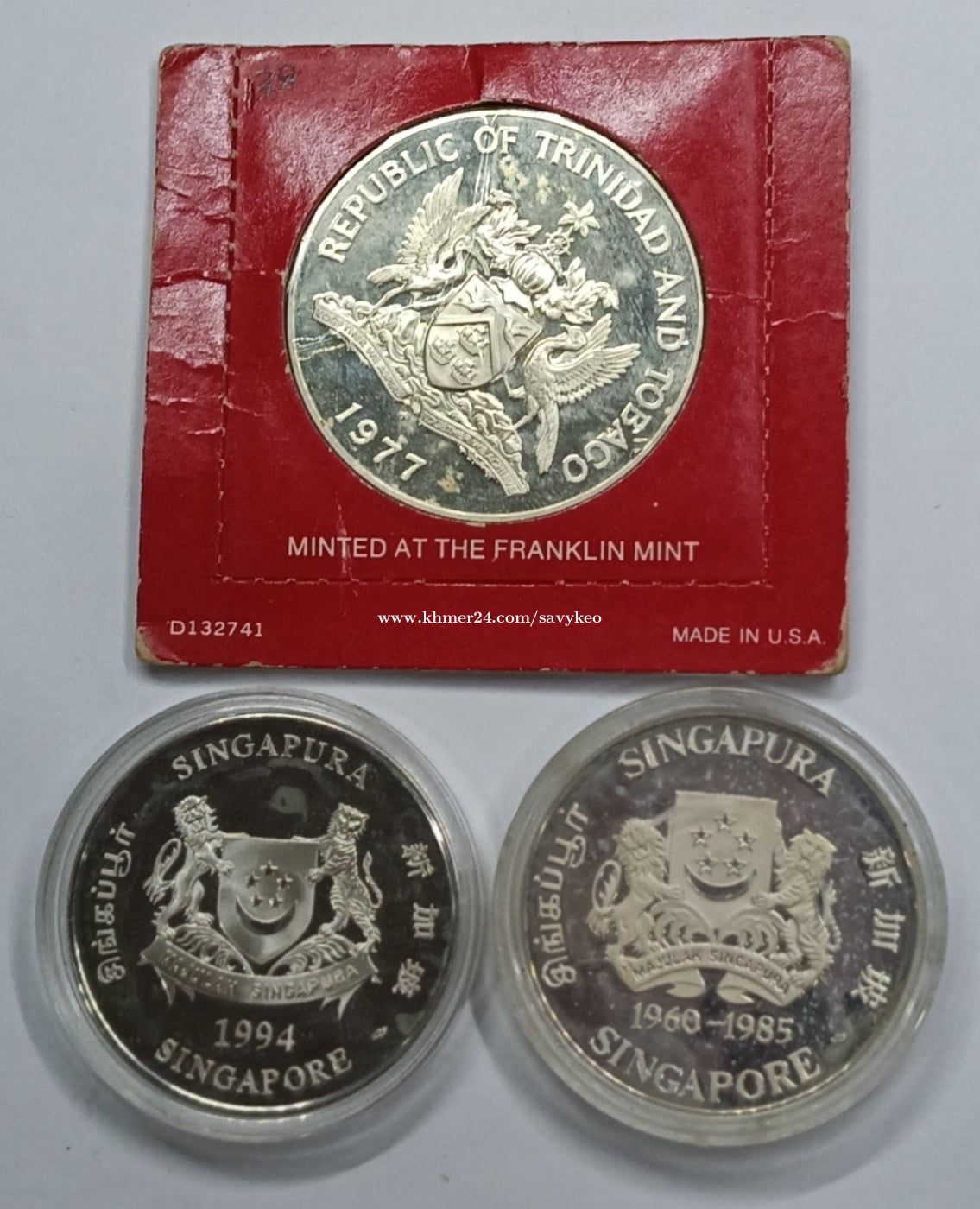 3 Silver Proof Coins, selling at $100 only, bullion value $116. 925 fine Silver, 35 g, 20 g and 20 g.
