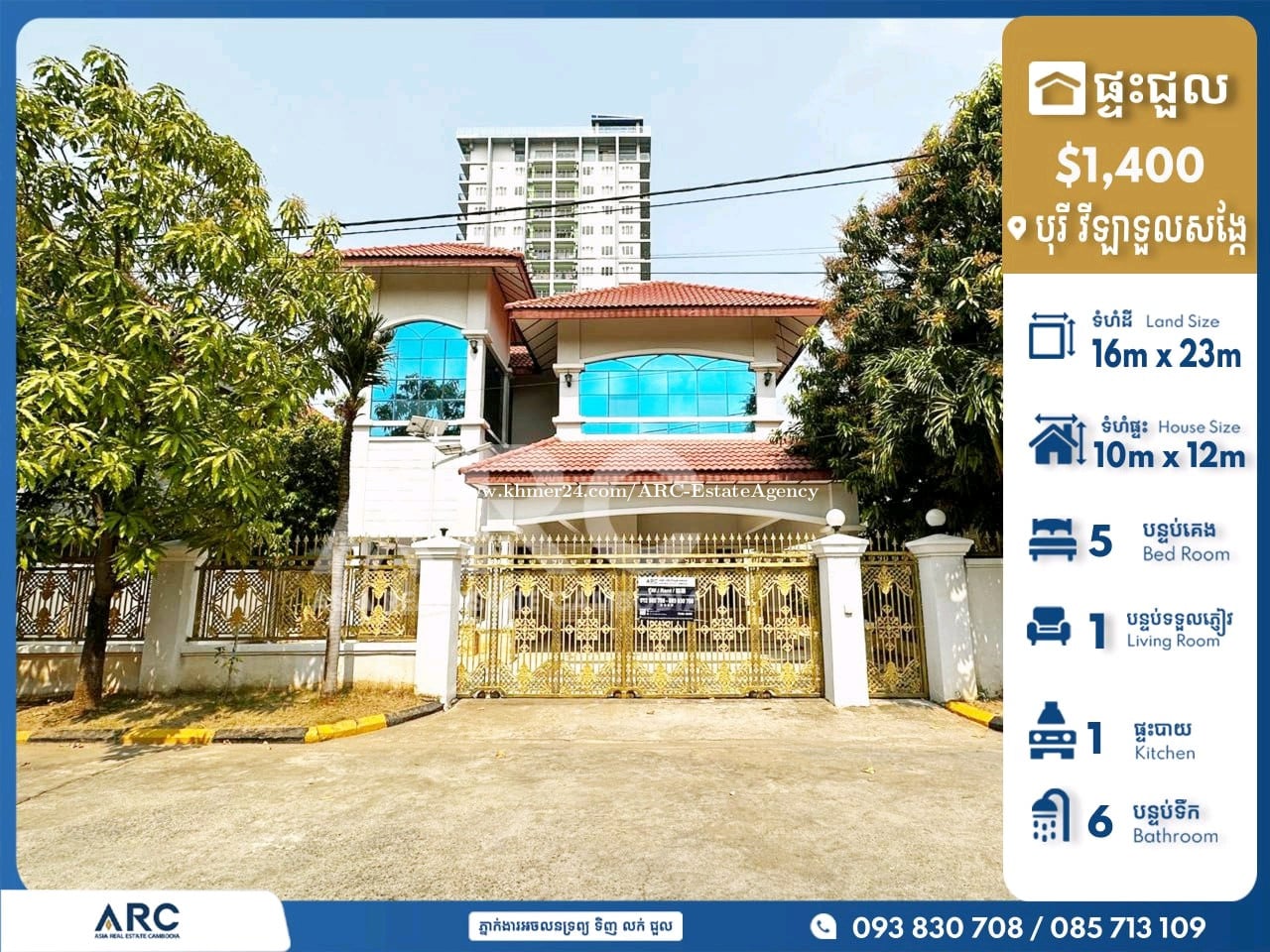 #Single Villa For Rent at Borey Villa Toul Sangkae #វីឡាទោលដាក់ជួលបន្ទាន់នៅក្នុងបុរីវីឡាទួលសង្កែ ខណ្ឌឬស្សីកែវ 🔹 តម្លៃជួល / Rent Price $1,400 ( ចរចាបាន ) 🔹 មានសំភារះជូនពេញ / Includes fully furnished 🔹 ទំហំផ្ទះ/ House size: 10m x 12m 🔹 ទំហំដី / land size: 16m x 23m 🔹 បន្ទប់គេង/ Bedroom: 05 🔹 បន្ទប់ទឹក/ Bathroom: 06 #永旺2附近 出租价格:$1,400 美金/可谈 房间数量:05房 , 06卫 配套设施:家具齐全 建筑面积:10米 X 12米 土地面积:16米 X 23米 សម្រាប់ពត៏មានលម្អិតសូមទំនាក់ទំនងមកក្រុមការងារ 085713xxxClick To Call / 093830xxxClick To Call / 0978899xxxClick To Call Chat to Telegram Agent https://t.me/sonsela14 Channel Telegram https://t.me/ARCKhanResseykeo 👉 អាជ្ញាប័ណ្ណ៖ EV-08-069