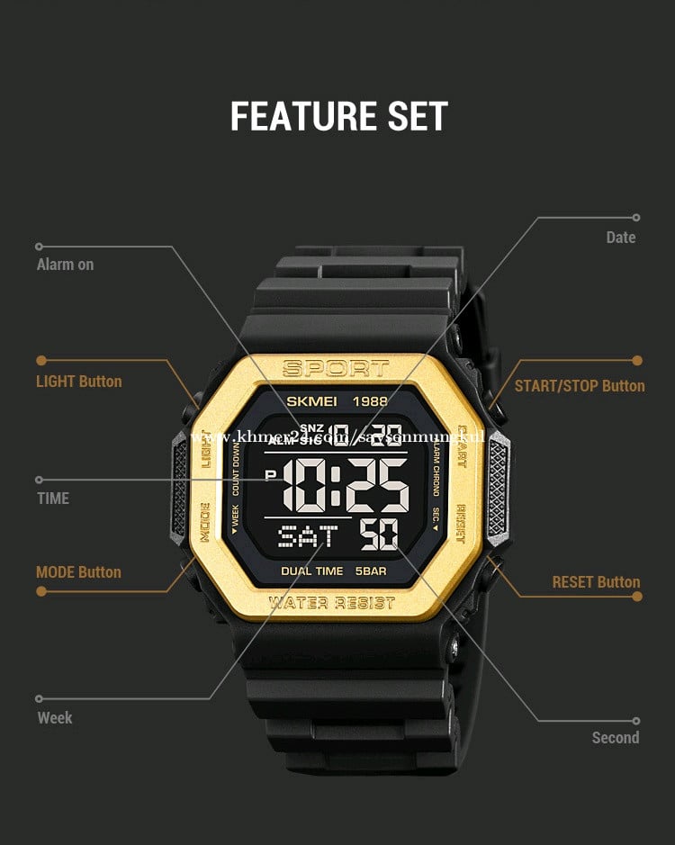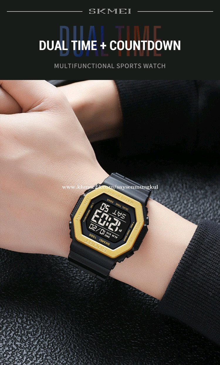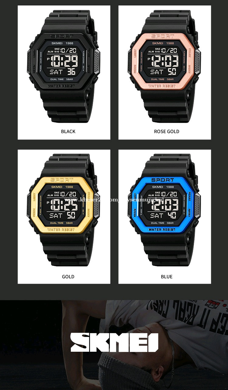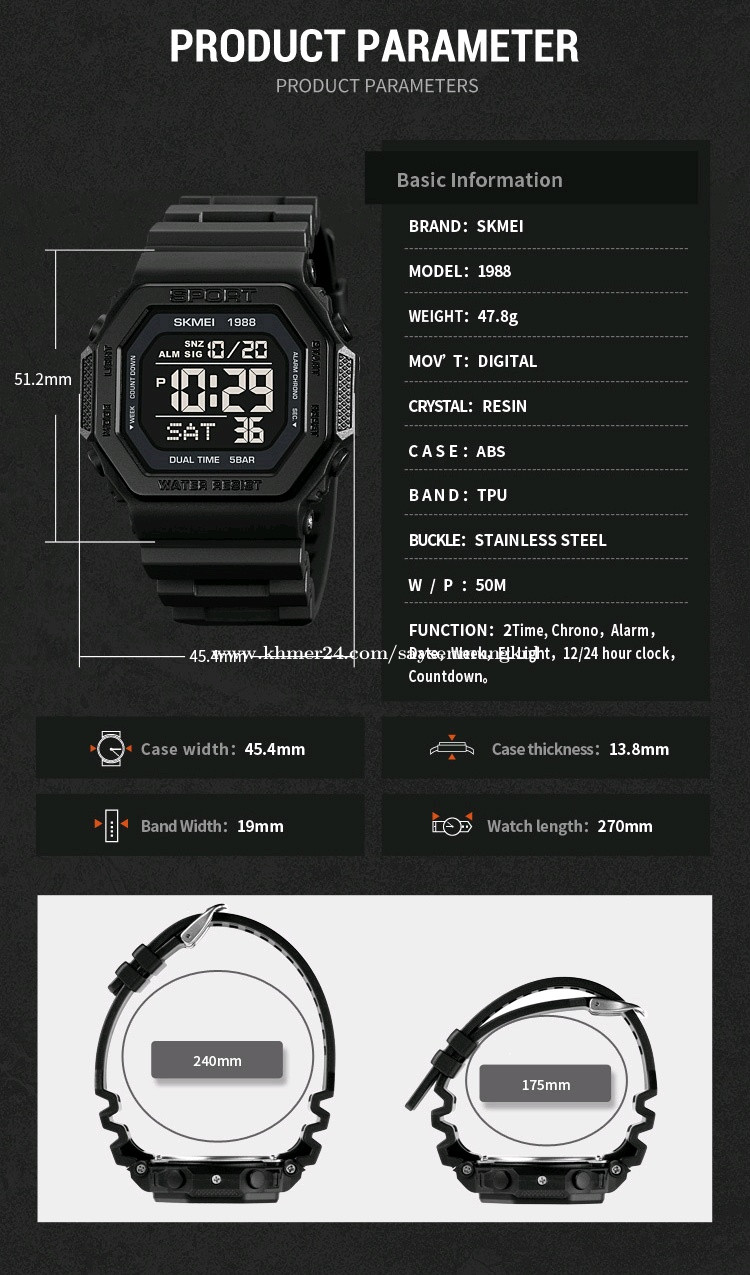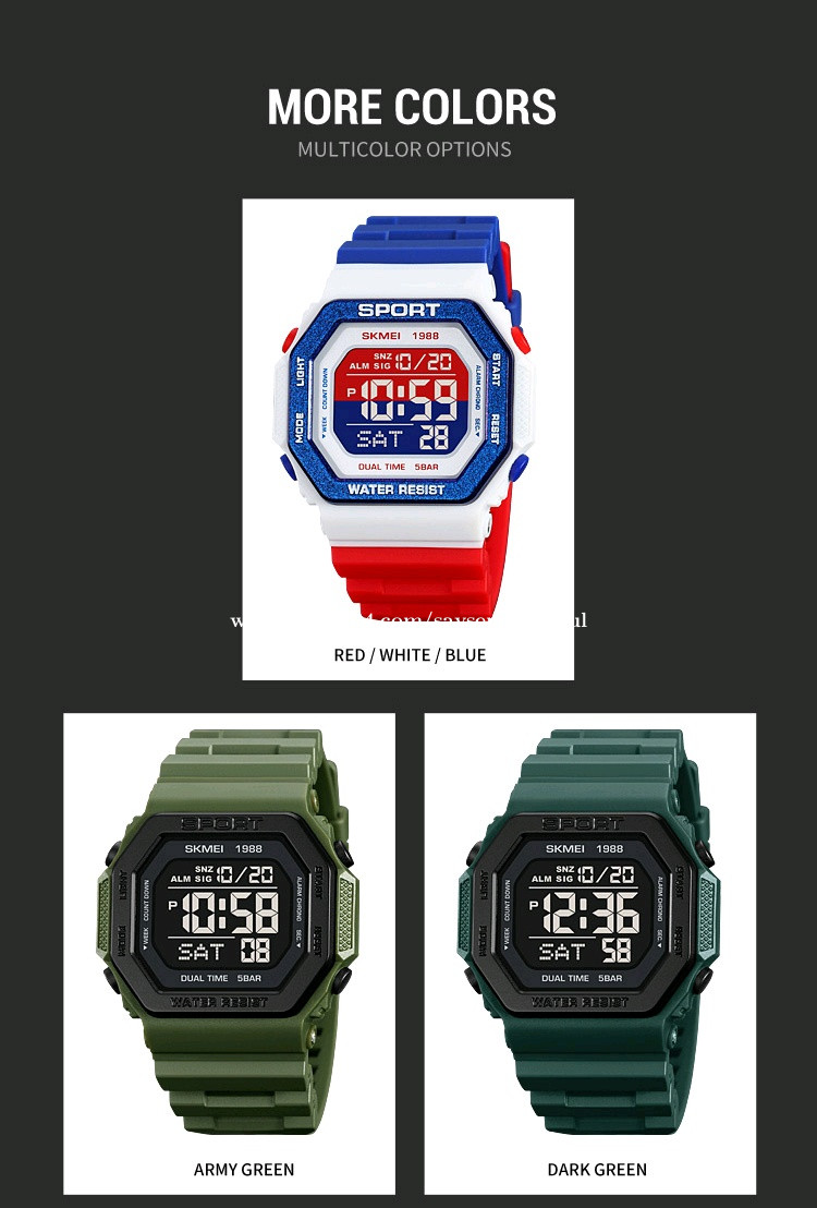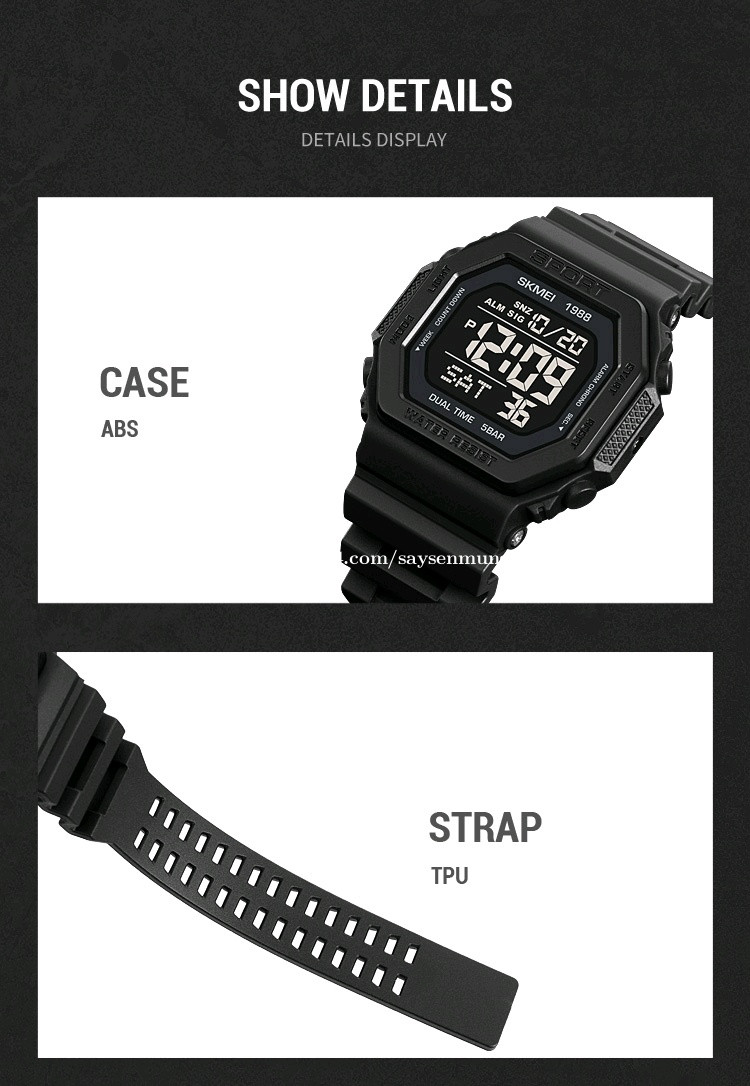 SKMEI 1988 Digital Sports Watch for Men LED Display Military Countdown Wristwatches Waterproof Mens Alarm Clock Reloj Hombre