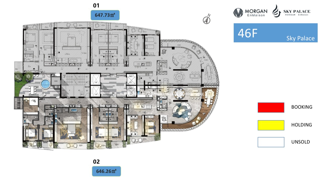 Morgan Enmaison Sky Palace Unit: 4602 Floor : 46 Size: 646.26 Sqm โ Original Price: $2.58 Million โ Sales Price includes Full Furniture and Decoration : $ 2.48 Million Note: 1 Floor have 2 Units and Price Negotiate ๐Tel: (+855) 95 826 289 ๐ฅTelegram: @sokuthea_realestate_advisor ๐ฅ WhatsApp: (+855) 823 289