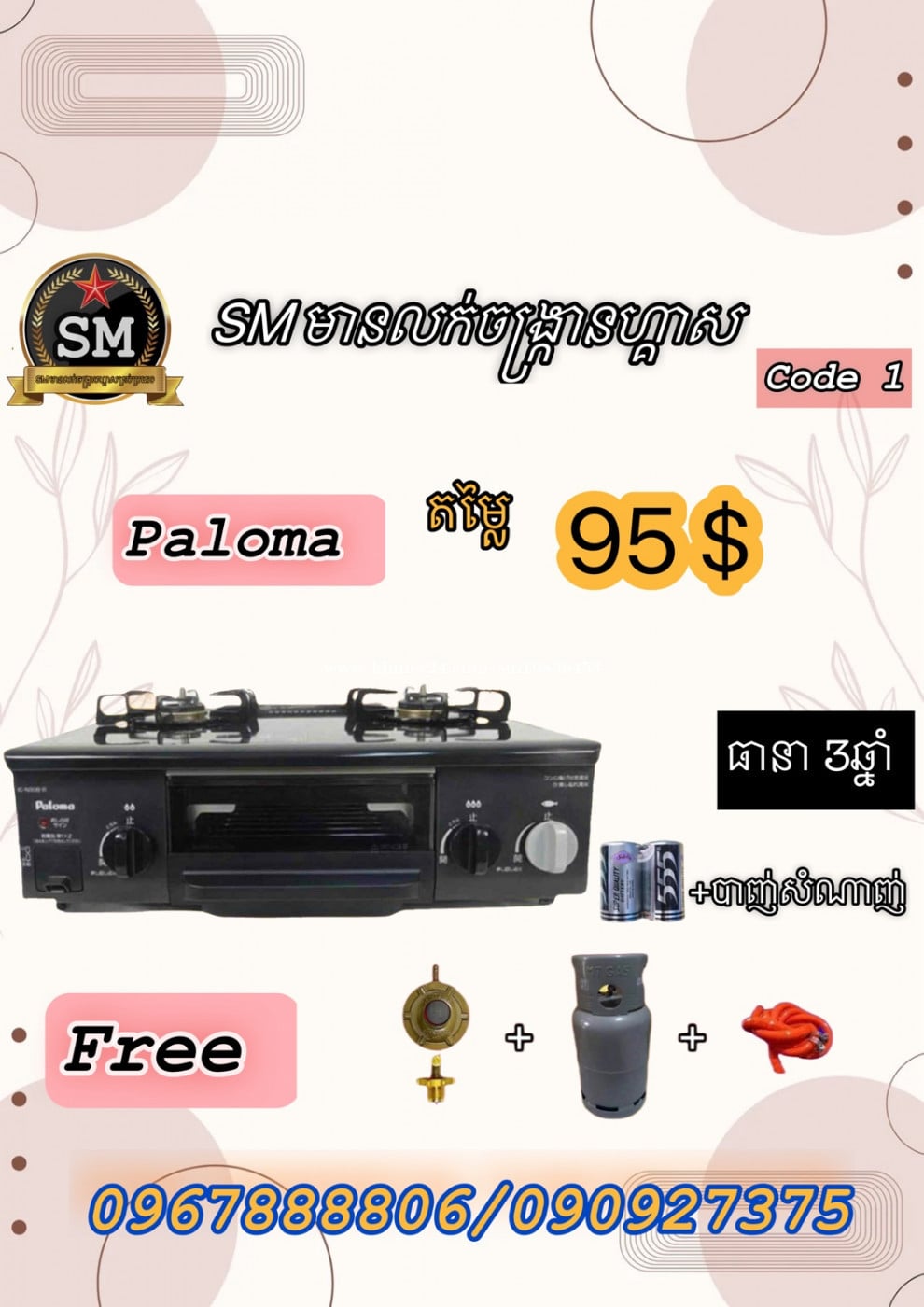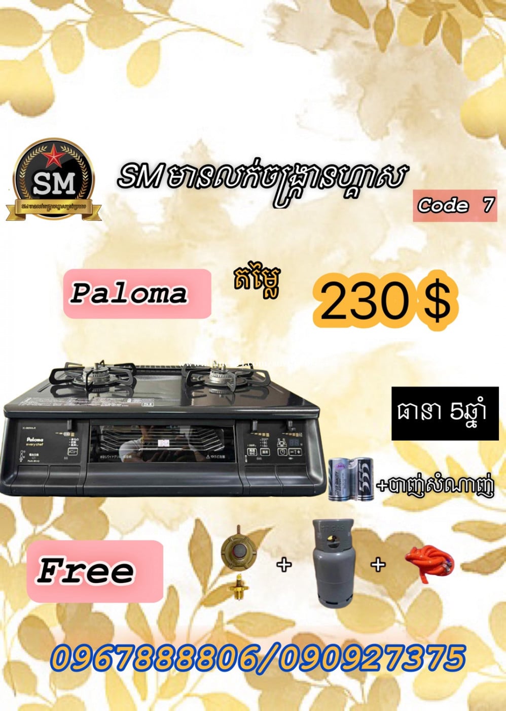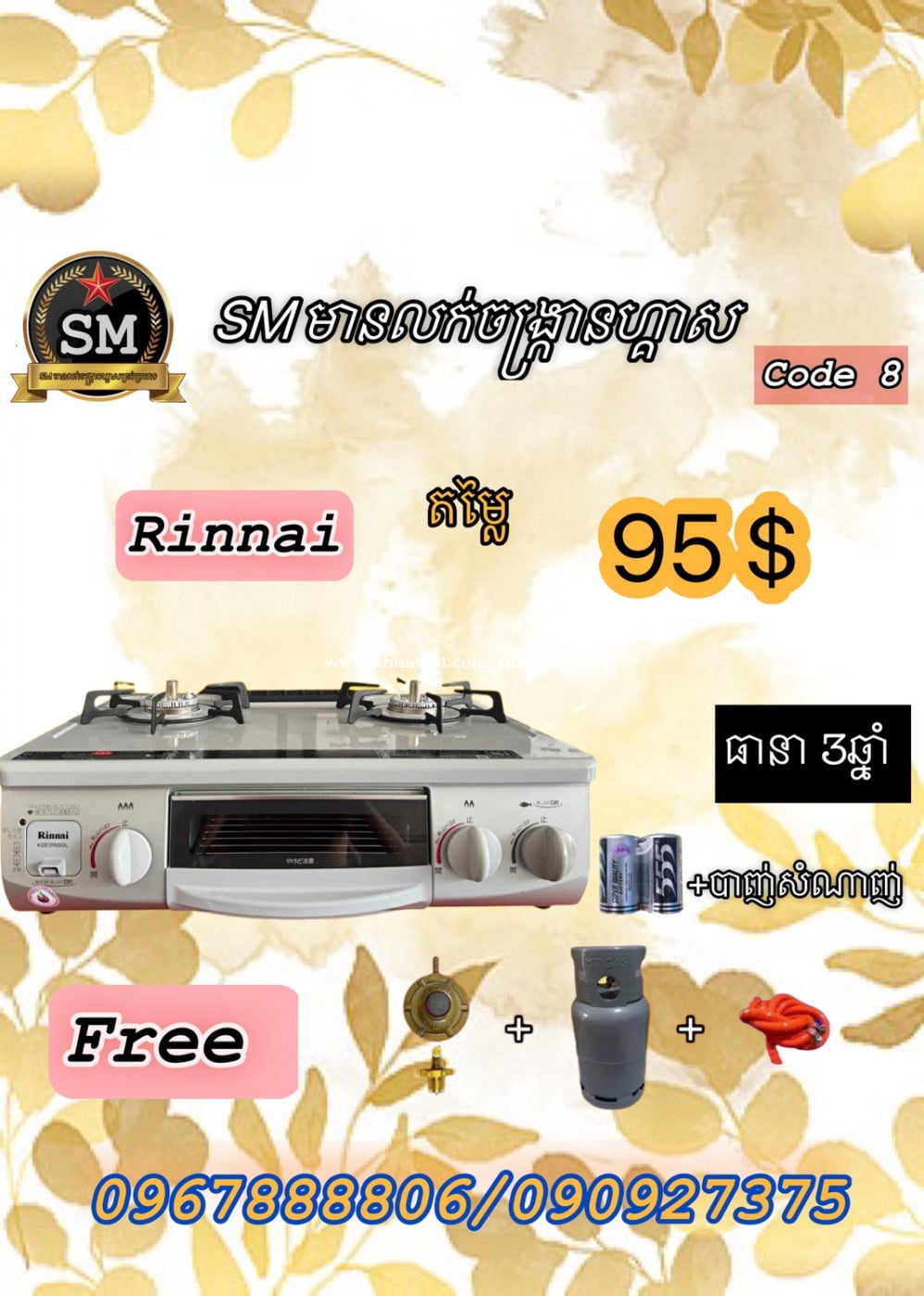 ▶️ចង្ក្រានហ្គាសជប៉ុនមួយទឹកថ្មី 👉. ចង្ក្រានហ្គាសជប៉ុនសុវត្ថិភាពល្អ🇯🇵✅ 👉. គុណភាពខ្ពស់.✅ 👉. មានថតកណ្ដាលសម្រាប់អាំងសាច់បាន✅ 👉. មានប្រព័ន្ធអូតូបិទខ្លួនឯងពេលបងប្អូនភ្លេចបិទ✅ 👉. ដាំបាយឆ្អិនអូតូបិទខ្លួនឯង✅ 👉. មានប្រព័ន្ធសន្សំសំចៃហ្គាសបាន 30%✅ ----------------------------------------------------- ☎️0967888xxxClick To Call / 090927xxxClick To Call #គុណភាពល្អតម្លៃសមរម្យ