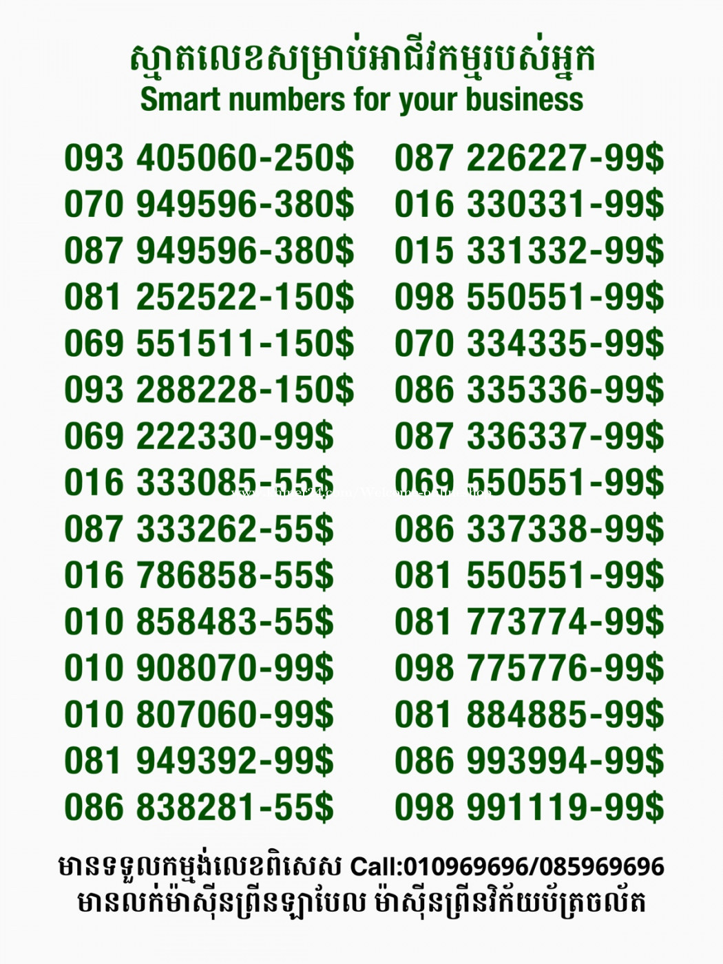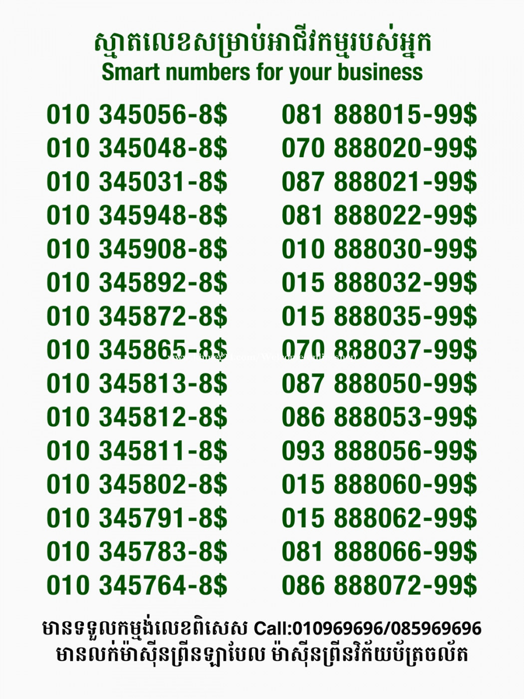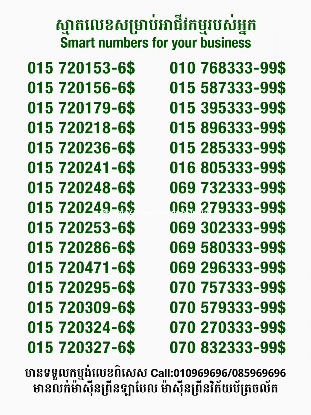 មានលក់លេខពិសេស មានទទួលកម្មង់លេខពិសេស មានលក់ម៉ាស៊ីនព្រីនឡាបែលចល័ត មានលក់ម៉ាស៊ីនព្រីនវិក័យប័ត្រចល័ត មានលក់សម្ភារៈប្រើប្រាស់ក្នុងគ្រួសារ Smart Prime II 1=30$ Smart hero 1=40$ ទូរសព្ទថ្មីក្នុងប្រអប់ លក់ធូរៗរហូតអស់ពីស្តុក អាចប្រើជាឧបករណ៍សម្រាប់ស៊ែរ wifi បាន ទំនាក់ទំនង(ខ្មែរ | English | 中文):010969696 | 085969696 Telegram: https://t.me/W9696 Telegram group: https://t.me/konkonnada អាសយដ្ឋាន:ផ្ទះលេខ២៣ ផ្លូវបេតុងលេខ១ ភូមិទួលពង្រ សង្កាត់ចោមចៅ ខណ្ឌពោធិ៍សែនជ័យ រាជធានីភ្នំពេញ ទីតាំង https://goo.gl/maps/8moqW4iTHUfJEvWQ9 ដើម្បីស្វែងរកលេខអាជីវកម្មដែលលោកអ្នកពេញចិត្ត សូមចូលទៅកាន់:https://www.khmer24.com/Welcome-onlineshop