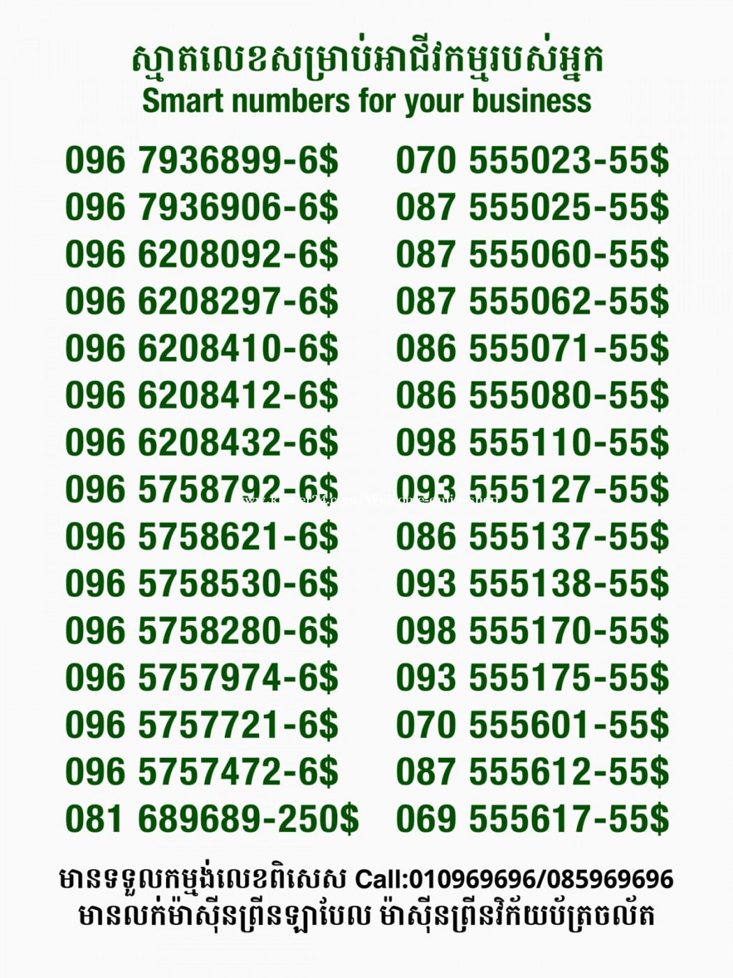មានលក់លេខពិសេស មានទទួលកម្មង់លេខពិសេស មានលក់ម៉ាស៊ីនព្រីនឡាបែលចល័ត មានលក់ម៉ាស៊ីនព្រីនវិក័យប័ត្រចល័ត មានលក់សម្ភារៈប្រើប្រាស់ក្នុងគ្រួសារ Smart Prime II 1=30$ Smart hero 1=40$ ទូរសព្ទថ្មីក្នុងប្រអប់ លក់ធូរៗរហូតអស់ពីស្តុក អាចប្រើជាឧបករណ៍សម្រាប់ស៊ែរ wifi បាន ទំនាក់ទំនង(ខ្មែរ | English | 中文):010969696 | 085969696 Telegram: https://t.me/W9696 Telegram group: https://t.me/konkonnada អាសយដ្ឋាន:ផ្ទះលេខ២៣ ផ្លូវបេតុងលេខ១ ភូមិទួលពង្រ សង្កាត់ចោមចៅ ខណ្ឌពោធិ៍សែនជ័យ រាជធានីភ្នំពេញ ទីតាំង https://goo.gl/maps/8moqW4iTHUfJEvWQ9 ដើម្បីស្វែងរកលេខអាជីវកម្មដែលលោកអ្នកពេញចិត្ត សូមចូលទៅកាន់:https://www.khmer24.com/Welcome-onlineshop