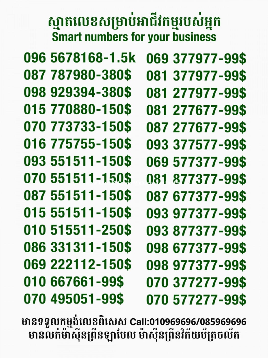 មានលក់លេខពិសេស មានទទួលកម្មង់លេខពិសេស មានលក់ម៉ាស៊ីនព្រីនឡាបែលចល័ត មានលក់ម៉ាស៊ីនព្រីនវិក័យប័ត្រចល័ត មានលក់សម្ភារៈប្រើប្រាស់ក្នុងគ្រួសារ Smart Prime II 1=30$ Smart hero 1=40$ ទូរសព្ទថ្មីក្នុងប្រអប់ លក់ធូរៗរហូតអស់ពីស្តុក អាចប្រើជាឧបករណ៍សម្រាប់ស៊ែរ wifi បាន ទំនាក់ទំនង(ខ្មែរ | English | 中文):010969696 | 085969696 Telegram: https://t.me/W9696 Telegram group: https://t.me/konkonnada អាសយដ្ឋាន:ផ្ទះលេខ២៣ ផ្លូវបេតុងលេខ១ ភូមិទួលពង្រ សង្កាត់ចោមចៅ ខណ្ឌពោធិ៍សែនជ័យ រាជធានីភ្នំពេញ ទីតាំង https://goo.gl/maps/8moqW4iTHUfJEvWQ9 ដើម្បីស្វែងរកលេខអាជីវកម្មដែលលោកអ្នកពេញចិត្ត សូមចូលទៅកាន់:https://www.khmer24.com/Welcome-onlineshop
