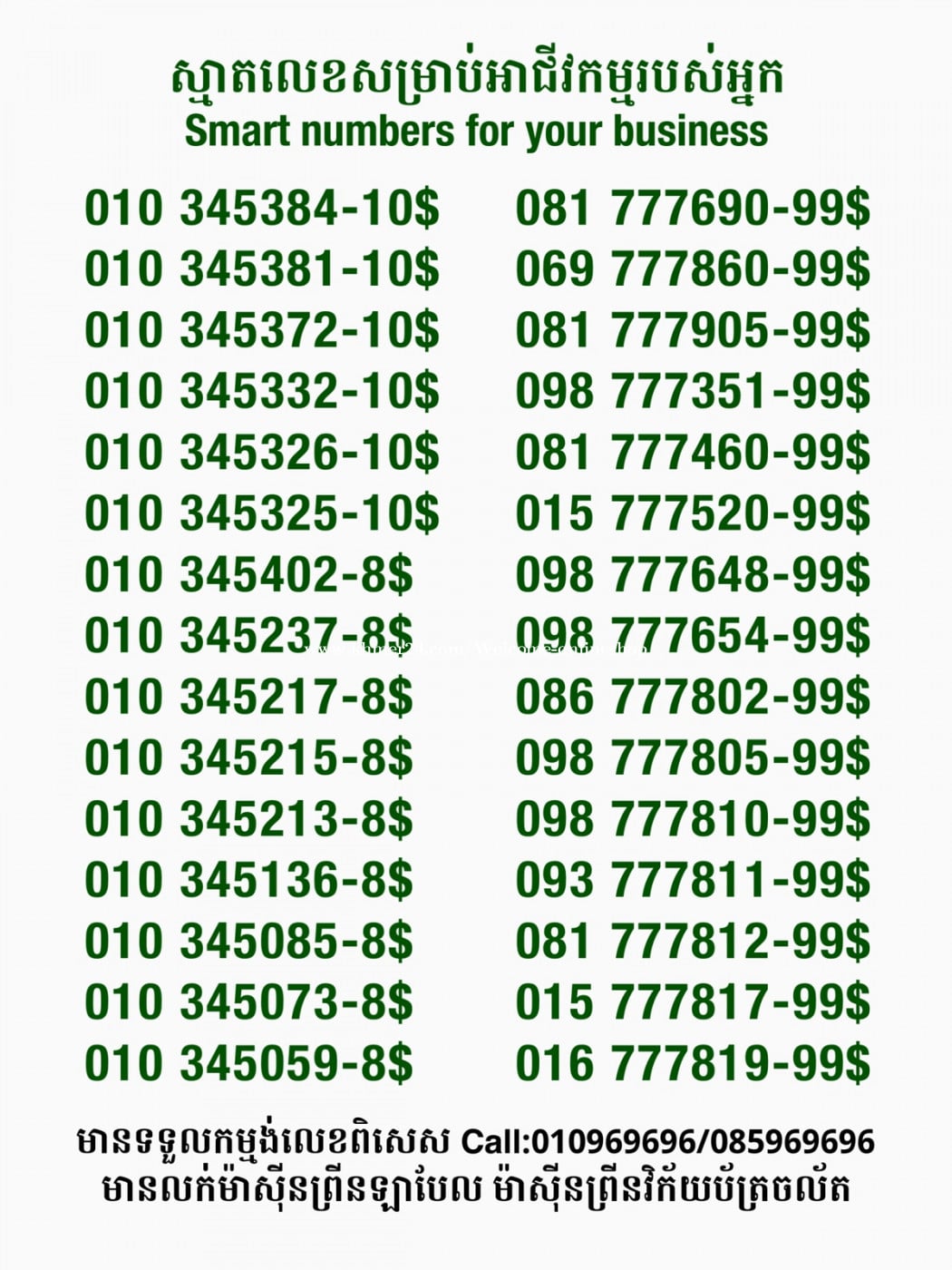មានលក់លេខពិសេស មានទទួលកម្មង់លេខពិសេស មានលក់ម៉ាស៊ីនព្រីនឡាបែលចល័ត មានលក់ម៉ាស៊ីនព្រីនវិក័យប័ត្រចល័ត មានលក់សម្ភារៈប្រើប្រាស់ក្នុងគ្រួសារ Smart Prime II 1=30$ Smart hero 1=40$ ទូរសព្ទថ្មីក្នុងប្រអប់ លក់ធូរៗរហូតអស់ពីស្តុក អាចប្រើជាឧបករណ៍សម្រាប់ស៊ែរ wifi បាន ទំនាក់ទំនង(ខ្មែរ | English | 中文):010969696 | 085969696 Telegram: https://t.me/W9696 Telegram group: https://t.me/konkonnada អាសយដ្ឋាន:ផ្ទះលេខ២៣ ផ្លូវបេតុងលេខ១ ភូមិទួលពង្រ សង្កាត់ចោមចៅ ខណ្ឌពោធិ៍សែនជ័យ រាជធានីភ្នំពេញ ទីតាំង https://goo.gl/maps/8moqW4iTHUfJEvWQ9 ដើម្បីស្វែងរកលេខអាជីវកម្មដែលលោកអ្នកពេញចិត្ត សូមចូលទៅកាន់:https://www.khmer24.com/Welcome-onlineshop