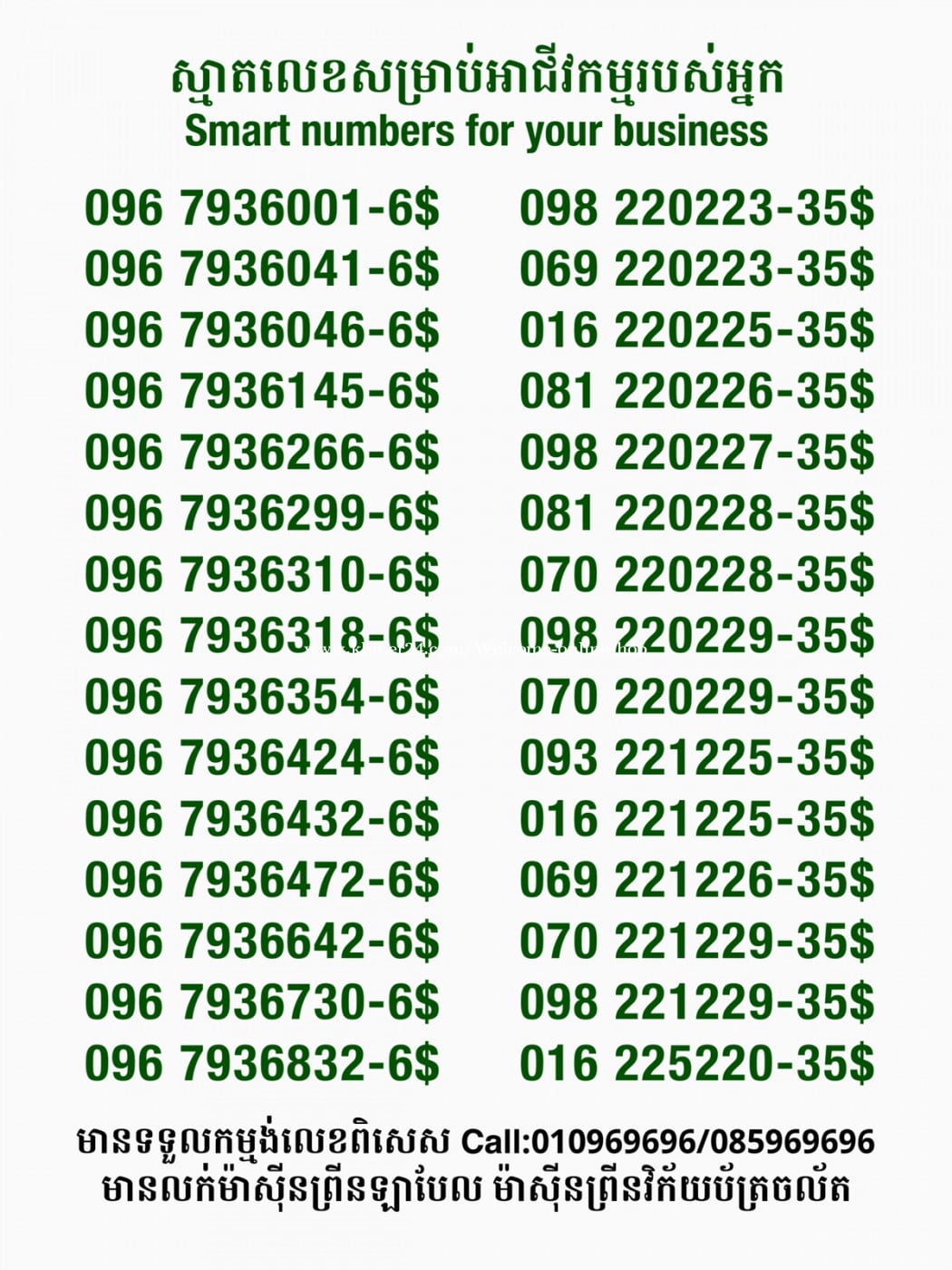មានលក់លេខពិសេស មានទទួលកម្មង់លេខពិសេស មានលក់ម៉ាស៊ីនព្រីនឡាបែលចល័ត មានលក់ម៉ាស៊ីនព្រីនវិក័យប័ត្រចល័ត មានលក់សម្ភារៈប្រើប្រាស់ក្នុងគ្រួសារ Smart Prime II 1=30$ Smart hero 1=40$ ទូរសព្ទថ្មីក្នុងប្រអប់ លក់ធូរៗរហូតអស់ពីស្តុក អាចប្រើជាឧបករណ៍សម្រាប់ស៊ែរ wifi បាន ទំនាក់ទំនង(ខ្មែរ | English | 中文):010969696 | 085969696 Telegram: https://t.me/W9696 Telegram group: https://t.me/konkonnada អាសយដ្ឋាន:ផ្ទះលេខ២៣ ផ្លូវបេតុងលេខ១ ភូមិទួលពង្រ សង្កាត់ចោមចៅ ខណ្ឌពោធិ៍សែនជ័យ រាជធានីភ្នំពេញ ទីតាំង https://goo.gl/maps/8moqW4iTHUfJEvWQ9 ដើម្បីស្វែងរកលេខអាជីវកម្មដែលលោកអ្នកពេញចិត្ត សូមចូលទៅកាន់:https://www.khmer24.com/Welcome-onlineshop