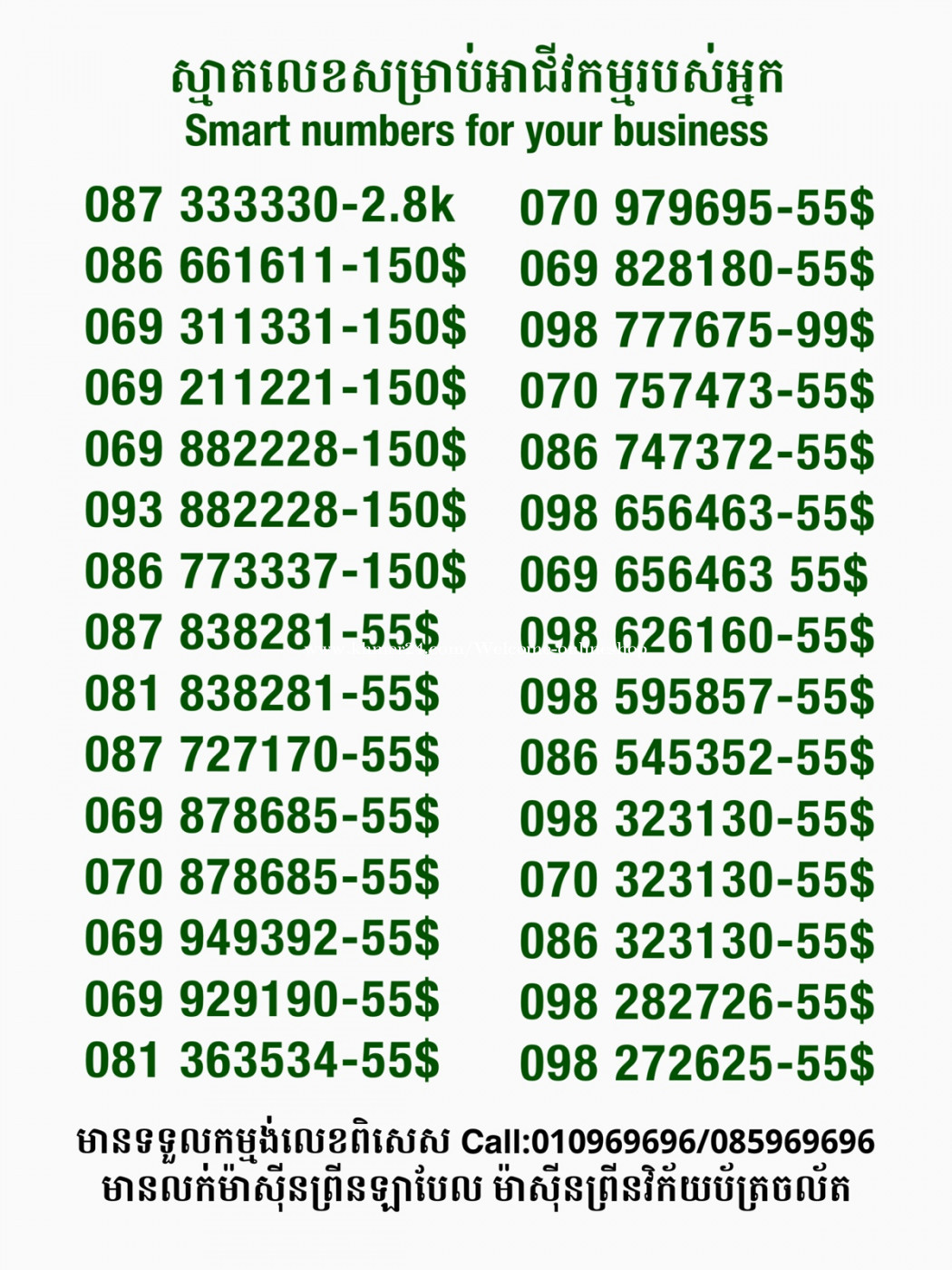 មានលក់លេខពិសេស មានទទួលកម្មង់លេខពិសេស មានលក់ម៉ាស៊ីនព្រីនឡាបែលចល័ត មានលក់ម៉ាស៊ីនព្រីនវិក័យប័ត្រចល័ត មានលក់សម្ភារៈប្រើប្រាស់ក្នុងគ្រួសារ Smart Prime II 1=30$ Smart hero 1=40$ ទូរសព្ទថ្មីក្នុងប្រអប់ លក់ធូរៗរហូតអស់ពីស្តុក អាចប្រើជាឧបករណ៍សម្រាប់ស៊ែរ wifi បាន ទំនាក់ទំនង(ខ្មែរ | English | 中文):010969696 | 085969696 Telegram: https://t.me/W9696 Telegram group: https://t.me/konkonnada អាសយដ្ឋាន:ផ្ទះលេខ២៣ ផ្លូវបេតុងលេខ១ ភូមិទួលពង្រ សង្កាត់ចោមចៅ ខណ្ឌពោធិ៍សែនជ័យ រាជធានីភ្នំពេញ ទីតាំង https://goo.gl/maps/8moqW4iTHUfJEvWQ9 ដើម្បីស្វែងរកលេខអាជីវកម្មដែលលោកអ្នកពេញចិត្ត សូមចូលទៅកាន់:https://www.khmer24.com/Welcome-onlineshop