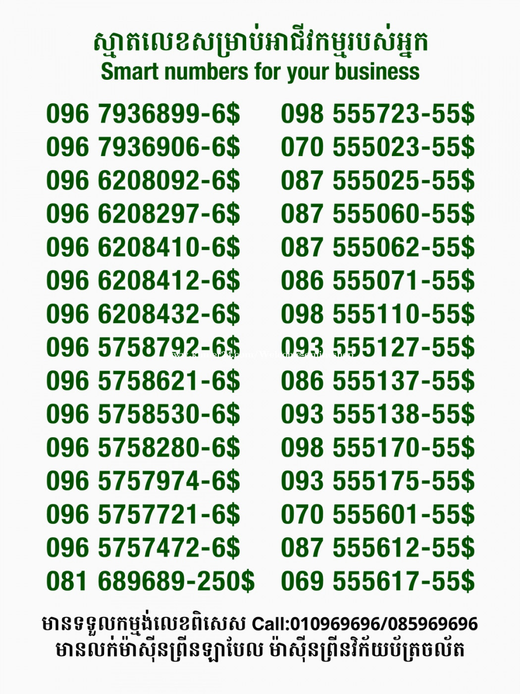 មានលក់លេខពិសេស មានទទួលកម្មង់លេខពិសេស មានលក់ម៉ាស៊ីនព្រីនឡាបែលចល័ត មានលក់ម៉ាស៊ីនព្រីនវិក័យប័ត្រចល័ត មានលក់សម្ភារៈប្រើប្រាស់ក្នុងគ្រួសារ Smart Prime II 1=30$ Smart hero 1=40$ ទូរសព្ទថ្មីក្នុងប្រអប់ លក់ធូរៗរហូតអស់ពីស្តុក អាចប្រើជាឧបករណ៍សម្រាប់ស៊ែរ wifi បាន ទំនាក់ទំនង(ខ្មែរ | English | 中文):010969696 | 085969696 Telegram: https://t.me/W9696 Telegram group: https://t.me/konkonnada អាសយដ្ឋាន:ផ្ទះលេខ២៣ ផ្លូវបេតុងលេខ១ ភូមិទួលពង្រ សង្កាត់ចោមចៅ ខណ្ឌពោធិ៍សែនជ័យ រាជធានីភ្នំពេញ ទីតាំង https://goo.gl/maps/8moqW4iTHUfJEvWQ9 ដើម្បីស្វែងរកលេខអាជីវកម្មដែលលោកអ្នកពេញចិត្ត សូមចូលទៅកាន់:https://www.khmer24.com/Welcome-onlineshop