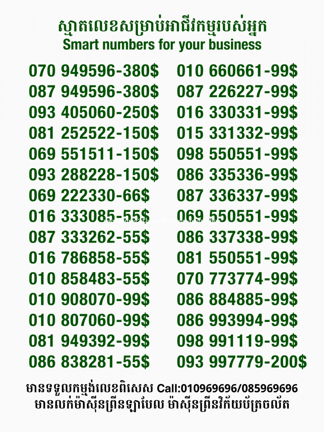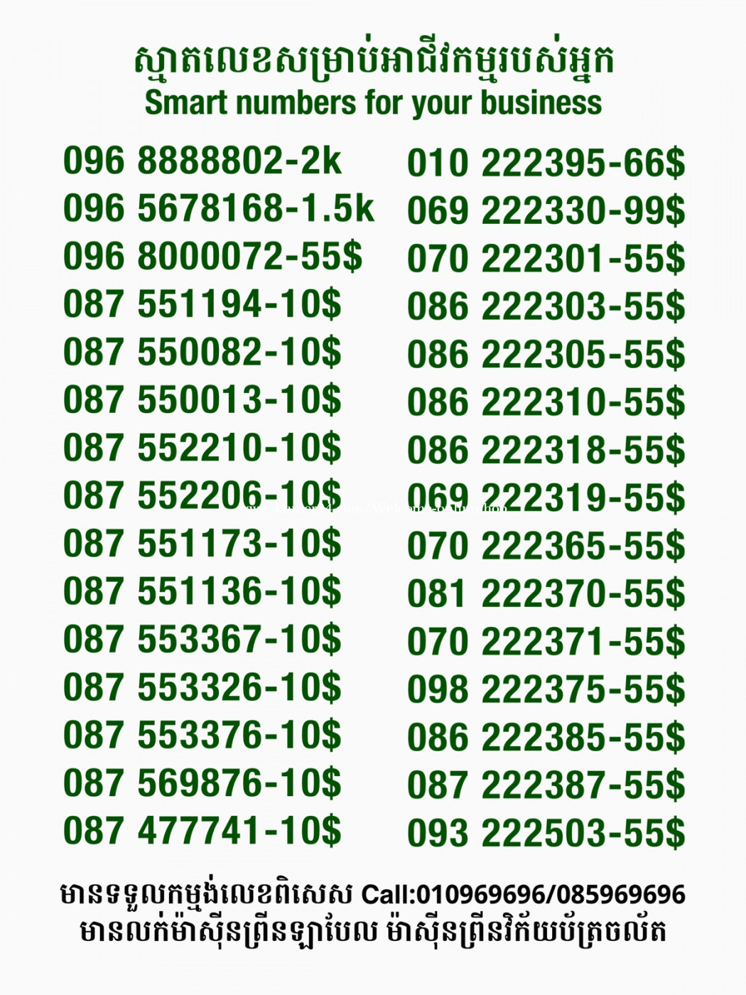 មានលក់លេខពិសេស មានទទួលកម្មង់លេខពិសេស មានលក់ម៉ាស៊ីនព្រីនឡាបែលចល័ត មានលក់ម៉ាស៊ីនព្រីនវិក័យប័ត្រចល័ត មានលក់សម្ភារៈប្រើប្រាស់ក្នុងគ្រួសារ Smart Prime II 1=30$ Smart hero 1=40$ ទូរសព្ទថ្មីក្នុងប្រអប់ លក់ធូរៗរហូតអស់ពីស្តុក អាចប្រើជាឧបករណ៍សម្រាប់ស៊ែរ wifi បាន ទំនាក់ទំនង(ខ្មែរ | English | 中文):010969696 | 085969696 Telegram: https://t.me/W9696 Telegram group: https://t.me/konkonnada អាសយដ្ឋាន:ផ្ទះលេខ២៣ ផ្លូវបេតុងលេខ១ ភូមិទួលពង្រ សង្កាត់ចោមចៅ ខណ្ឌពោធិ៍សែនជ័យ រាជធានីភ្នំពេញ ទីតាំង https://goo.gl/maps/8moqW4iTHUfJEvWQ9 ដើម្បីស្វែងរកលេខអាជីវកម្មដែលលោកអ្នកពេញចិត្ត សូមចូលទៅកាន់:https://www.khmer24.com/Welcome-onlineshop