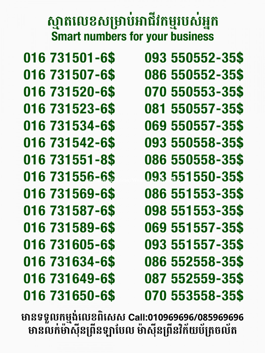 មានលក់លេខពិសេស មានទទួលកម្មង់លេខពិសេស មានលក់ម៉ាស៊ីនព្រីនឡាបែលចល័ត មានលក់ម៉ាស៊ីនព្រីនវិក័យប័ត្រចល័ត មានលក់សម្ភារៈប្រើប្រាស់ក្នុងគ្រួសារ Smart Prime II 1=30$ Smart hero 1=40$ ទូរសព្ទថ្មីក្នុងប្រអប់ លក់ធូរៗរហូតអស់ពីស្តុក អាចប្រើជាឧបករណ៍សម្រាប់ស៊ែរ wifi បាន ទំនាក់ទំនង(ខ្មែរ | English | 中文):010969696 | 085969696 Telegram: https://t.me/W9696 Telegram group: https://t.me/konkonnada អាសយដ្ឋាន:ផ្ទះលេខ២៣ ផ្លូវបេតុងលេខ១ ភូមិទួលពង្រ សង្កាត់ចោមចៅ ខណ្ឌពោធិ៍សែនជ័យ រាជធានីភ្នំពេញ ទីតាំង https://goo.gl/maps/8moqW4iTHUfJEvWQ9 ដើម្បីស្វែងរកលេខអាជីវកម្មដែលលោកអ្នកពេញចិត្ត សូមចូលទៅកាន់:https://www.khmer24.com/Welcome-onlineshop