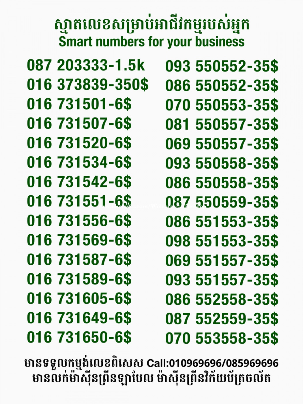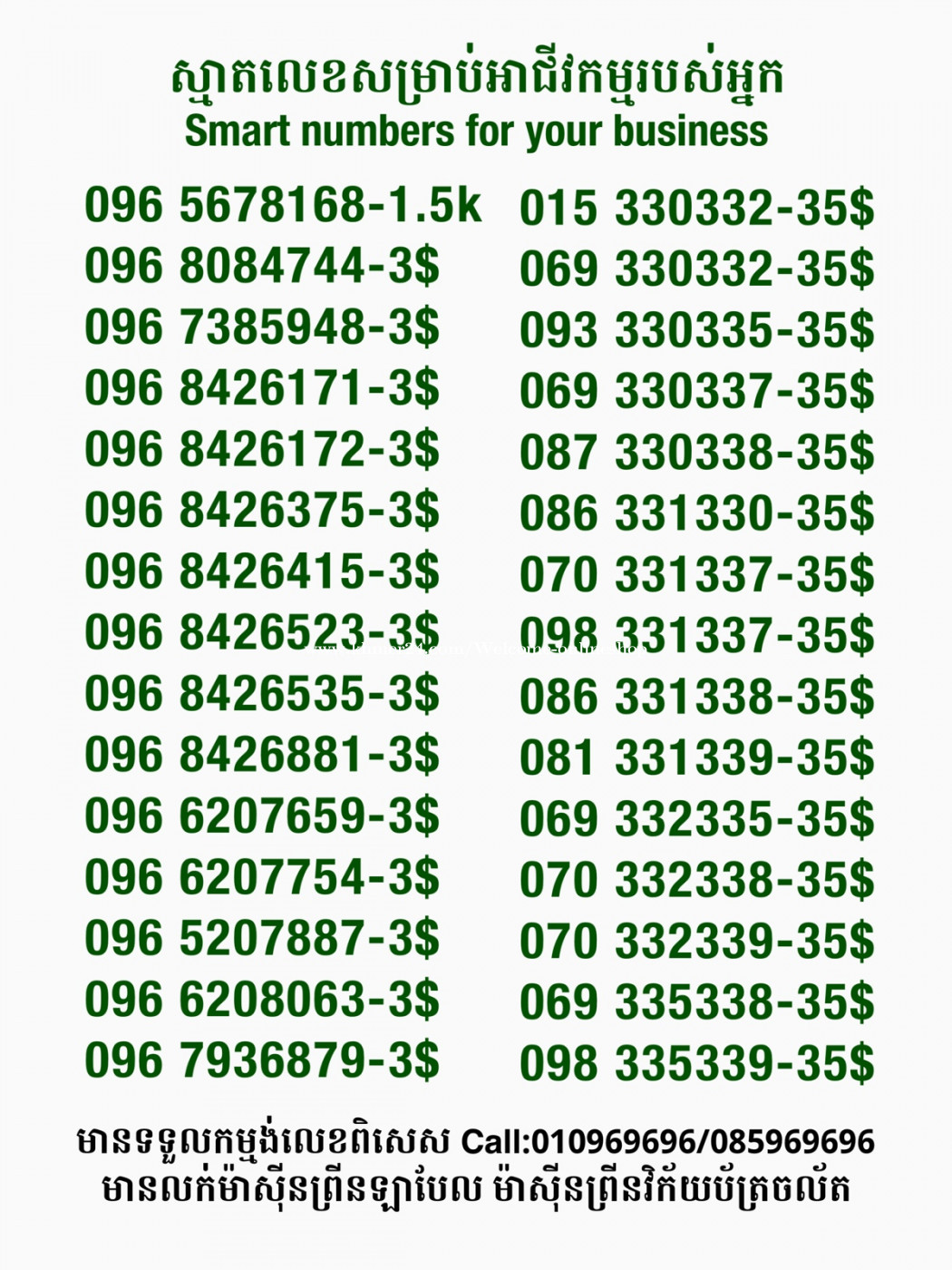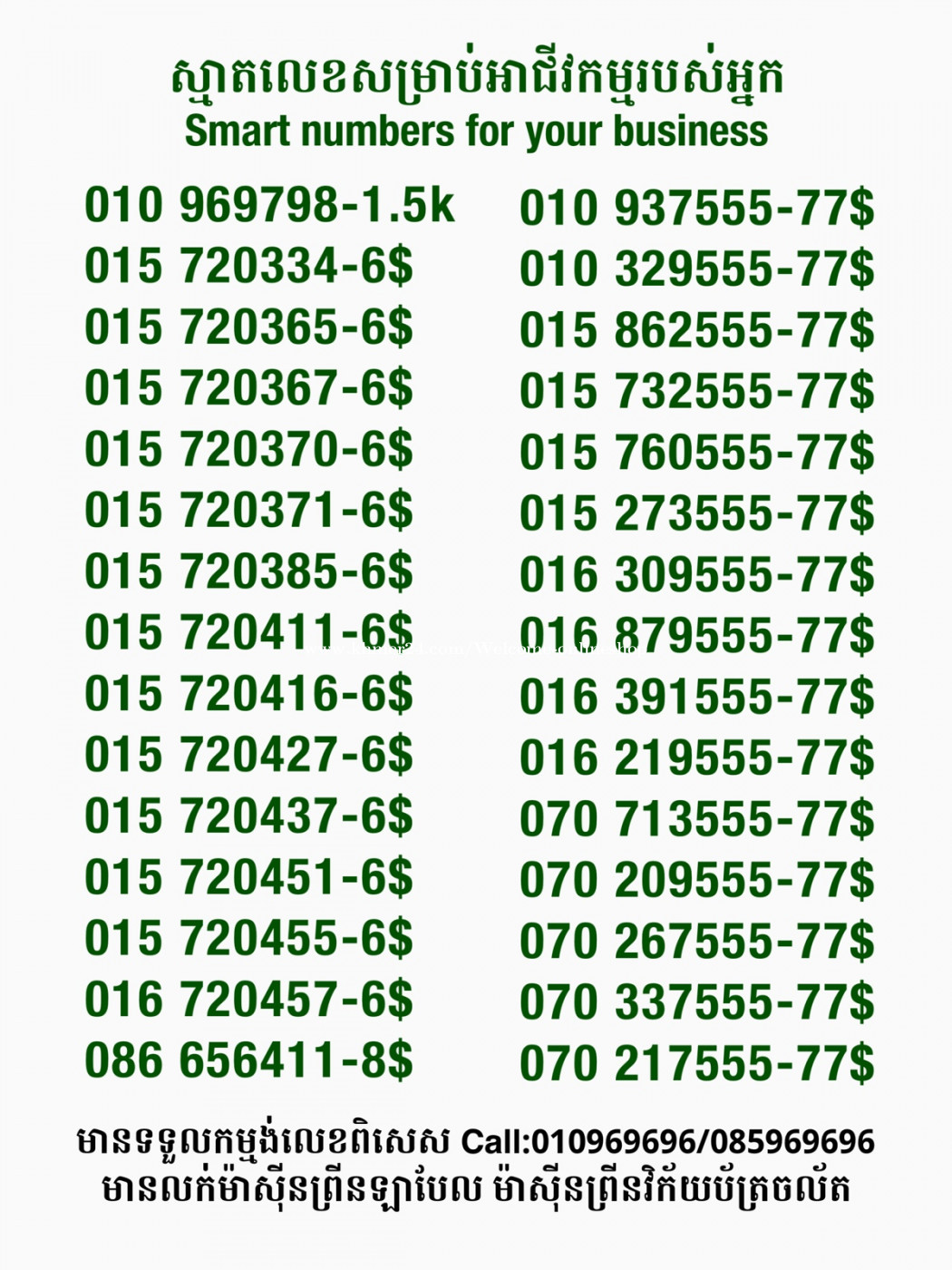 មានលក់លេខពិសេស មានទទួលកម្មង់លេខពិសេស មានលក់ម៉ាស៊ីនព្រីនឡាបែល មានលក់ម៉ាស៊ីនព្រីនវិក័យប័ត្រ មានលក់សម្ភារៈប្រើប្រាស់ក្នុងគ្រួសារ Smart Prime II 1=30$ Smart hero 1=40$ ទូរសព្ទថ្មីក្នុងប្រអប់ លក់ធូរៗរហូតអស់ពីស្តុក អាចប្រើជាឧបករណ៍សម្រាប់ស៊ែរ wifi បាន ទំនាក់ទំនង(ខ្មែរ | English | 中文):010969696 | 085969696 Telegram: https://t.me/W9696 Telegram group: https://t.me/konkonnada អាសយដ្ឋាន:ផ្ទះលេខ២៣ ផ្លូវបេតុងលេខ១ ភូមិទួលពង្រ សង្កាត់ចោមចៅ ខណ្ឌពោធិ៍សែនជ័យ រាជធានីភ្នំពេញ ទីតាំង https://goo.gl/maps/8moqW4iTHUfJEvWQ9 ដើម្បីស្វែងរកលេខអាជីវកម្មដែលលោកអ្នកពេញចិត្ត សូមចូលទៅកាន់:https://www.khmer24.com/Welcome-onlineshop