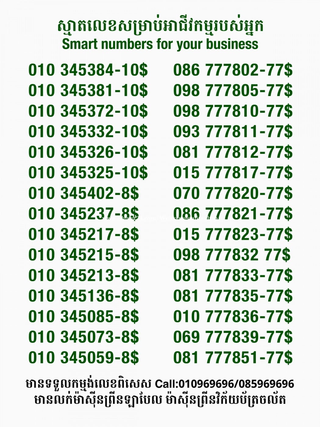 មានលក់លេខពិសេស មានទទួលកម្មង់លេខពិសេស មានលក់ម៉ាស៊ីនព្រីនឡាបែល មានលក់ម៉ាស៊ីនព្រីនវិក័យប័ត្រ មានលក់សម្ភារៈប្រើប្រាស់ក្នុងគ្រួសារ Smart Prime II 1=30$ Smart hero 1=40$ ទូរសព្ទថ្មីក្នុងប្រអប់ លក់ធូរៗរហូតអស់ពីស្តុក អាចប្រើជាឧបករណ៍សម្រាប់ស៊ែរ wifi បាន ទំនាក់ទំនង(ខ្មែរ | English | 中文):010969696 | 085969696 Telegram: https://t.me/W9696 Telegram group: https://t.me/konkonnada អាសយដ្ឋាន:ផ្ទះលេខ២៣ ផ្លូវបេតុងលេខ១ ភូមិទួលពង្រ សង្កាត់ចោមចៅ ខណ្ឌពោធិ៍សែនជ័យ រាជធានីភ្នំពេញ ទីតាំង https://goo.gl/maps/8moqW4iTHUfJEvWQ9 ដើម្បីស្វែងរកលេខអាជីវកម្មដែលលោកអ្នកពេញចិត្ត សូមចូលទៅកាន់:https://www.khmer24.com/Welcome-onlineshop