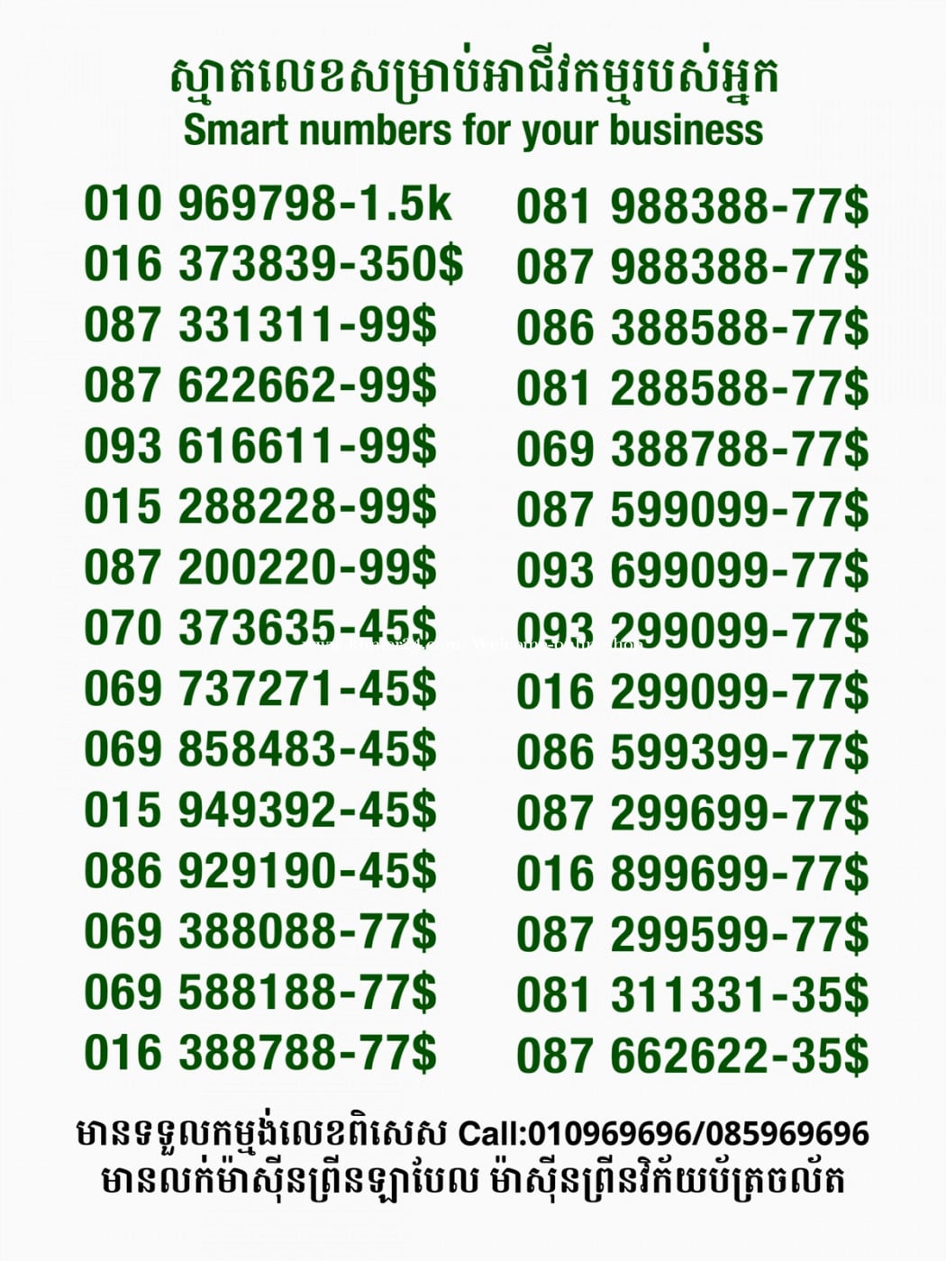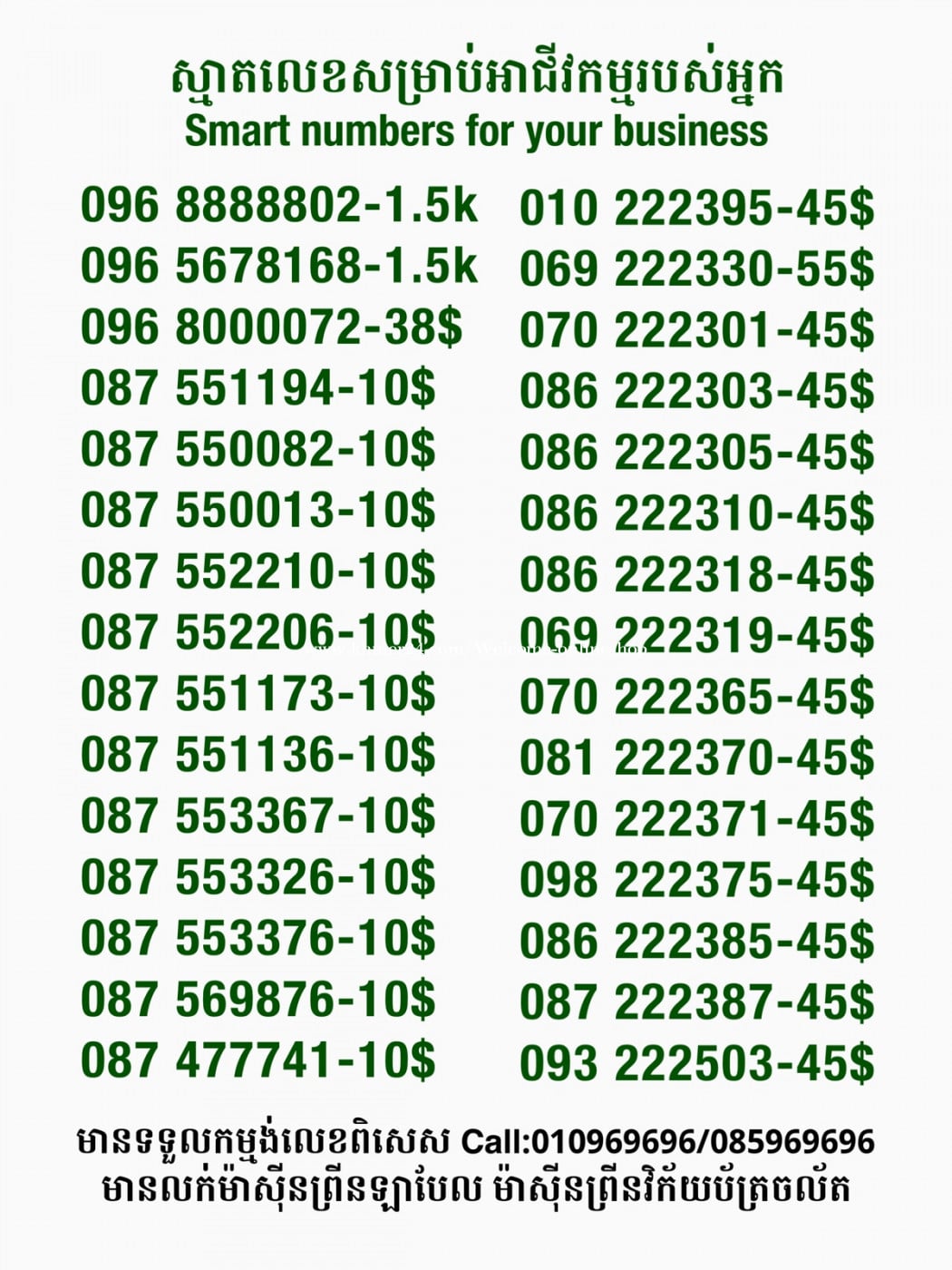 មានលក់លេខពិសេស មានទទួលកម្មង់លេខពិសេស មានលក់ម៉ាស៊ីនព្រីនឡាបែល មានលក់ម៉ាស៊ីនព្រីនវិក័យប័ត្រ មានលក់សម្ភារៈប្រើប្រាស់ក្នុងគ្រួសារ Smart Prime II 1=30$ Smart hero 1=40$ ទូរសព្ទថ្មីក្នុងប្រអប់ លក់ធូរៗរហូតអស់ពីស្តុក អាចប្រើជាឧបករណ៍សម្រាប់ស៊ែរ wifi បាន ទំនាក់ទំនង(ខ្មែរ | English | 中文):010969696 | 085969696 Telegram: https://t.me/W9696 Telegram group: https://t.me/konkonnada អាសយដ្ឋាន:ផ្ទះលេខ២៣ ផ្លូវបេតុងលេខ១ ភូមិទួលពង្រ សង្កាត់ចោមចៅ ខណ្ឌពោធិ៍សែនជ័យ រាជធានីភ្នំពេញ ទីតាំង https://goo.gl/maps/8moqW4iTHUfJEvWQ9 ដើម្បីស្វែងរកលេខអាជីវកម្មដែលលោកអ្នកពេញចិត្ត សូមចូលទៅកាន់:https://www.khmer24.com/Welcome-onlineshop