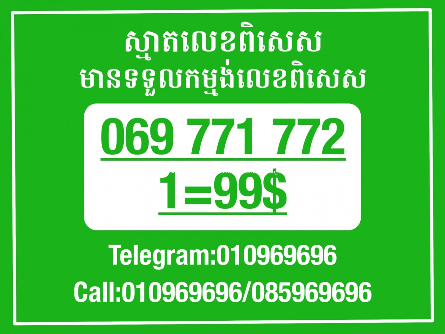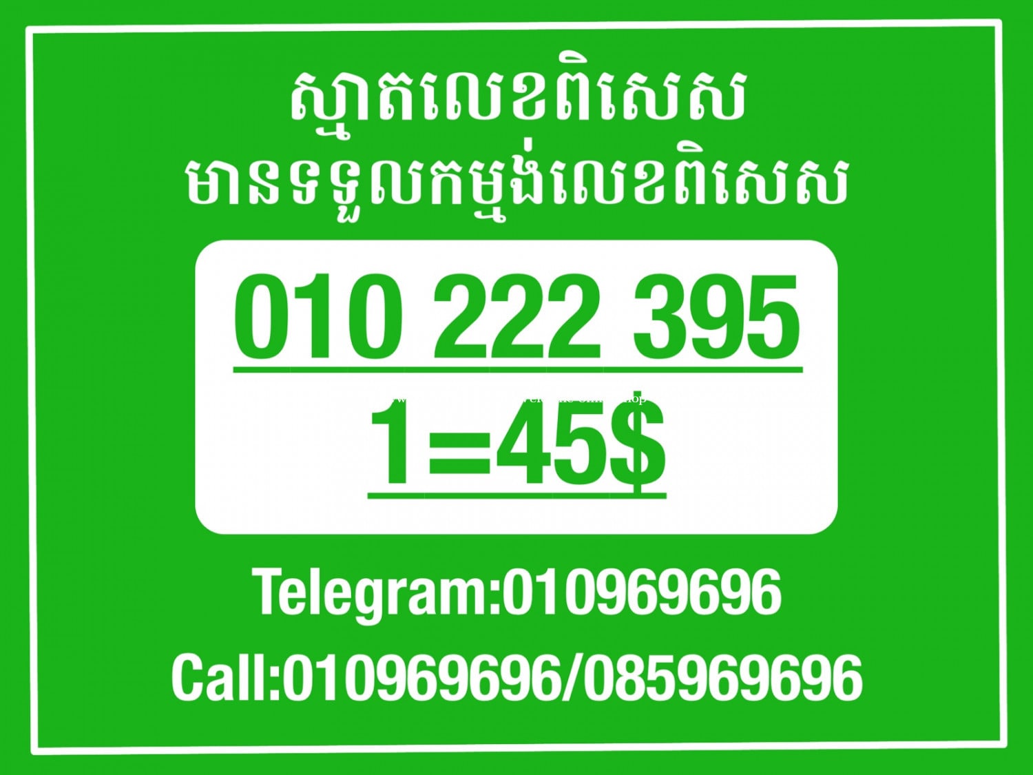 មានលក់លេខពិសេស មានទទួលកម្មង់លេខពិសេស មានលក់ម៉ាស៊ីនព្រីនឡាបែល មានលក់ម៉ាស៊ីនព្រីនវិក័យប័ត្រ មានលក់សម្ភារៈប្រើប្រាស់ក្នុងគ្រួសារ Smart Prime II 1=30$ Smart hero 1=40$ ទូរសព្ទថ្មីក្នុងប្រអប់ លក់ធូរៗរហូតអស់ពីស្តុក អាចប្រើជាឧបករណ៍សម្រាប់ស៊ែរ wifi បាន ទំនាក់ទំនង(ខ្មែរ | English | 中文):010969696 | 085969696 Telegram: https://t.me/W9696 Telegram group: https://t.me/konkonnada អាសយដ្ឋាន:ផ្ទះលេខ២៣ ផ្លូវបេតុងលេខ១ ភូមិទួលពង្រ សង្កាត់ចោមចៅ ខណ្ឌពោធិ៍សែនជ័យ រាជធានីភ្នំពេញ ទីតាំង https://goo.gl/maps/8moqW4iTHUfJEvWQ9 ដើម្បីស្វែងរកលេខអាជីវកម្មដែលលោកអ្នកពេញចិត្ត សូមចូលទៅកាន់:https://www.khmer24.com/Welcome-onlineshop